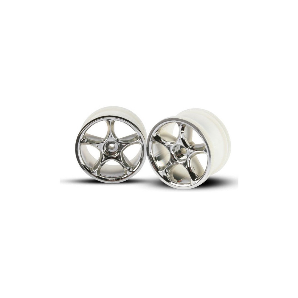 Hátsó Tracer kerekek króm. A tárcsa átmérője 56 mm (2,2"), szélessége 38 mm. Traxxas Bandit autókhoz.
