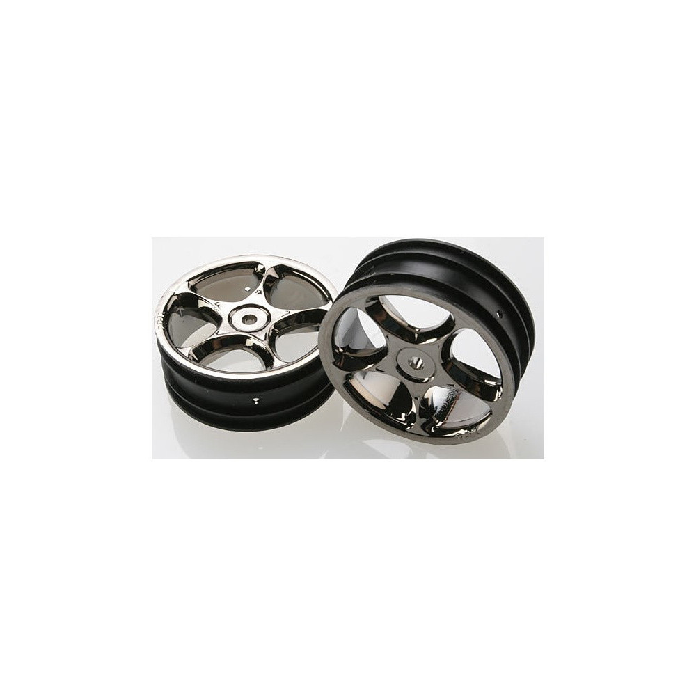 Tracer első kerekek fekete/króm. A tárcsa átmérője 56mm (2.2"), szélessége 24mm. Traxxas Bandit autókhoz.