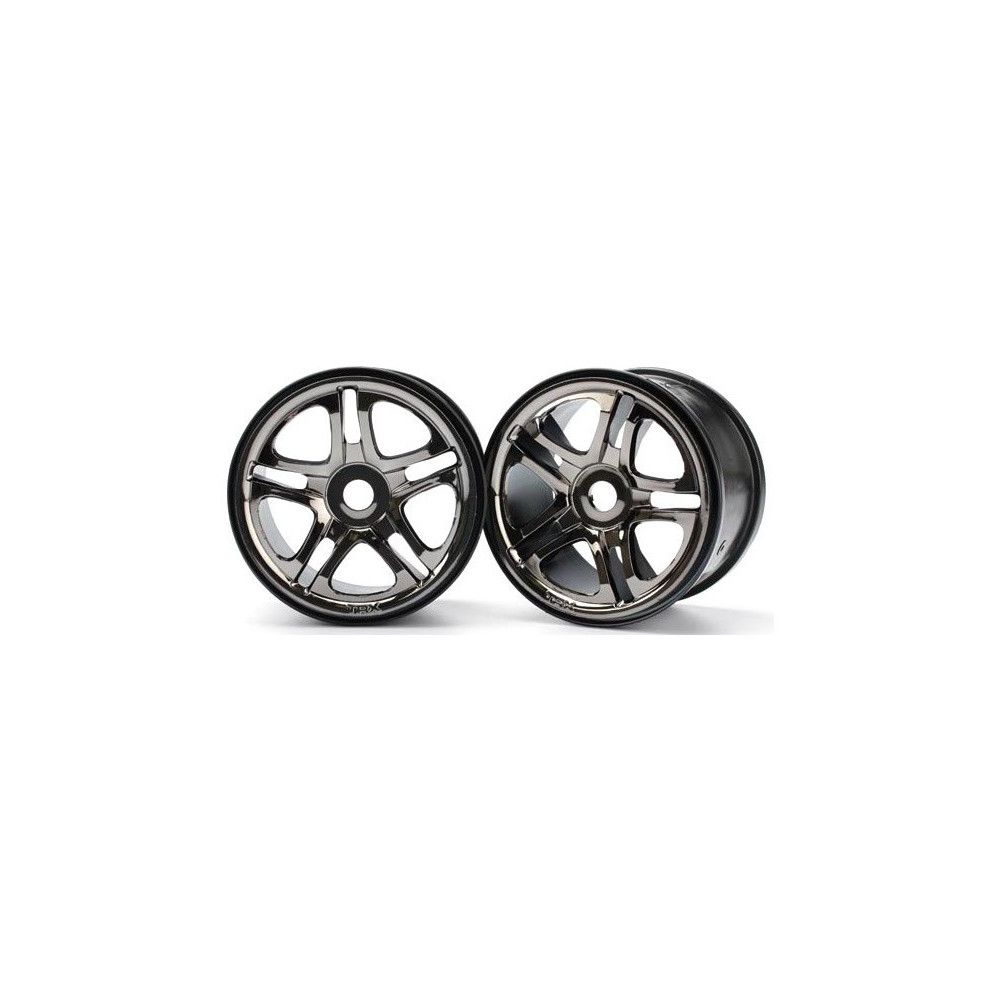 Univerzális küllős kerekek króm fekete. A tárcsa átmérője 96 mm (3,8"), szélessége 70 mm. Traxxas T-Maxx 3.3, Revo 3.3 4WD, E-Maxx, E-Revo, Summit 4WD modellekhez. Hatszög 17mm-es hornyokkal.