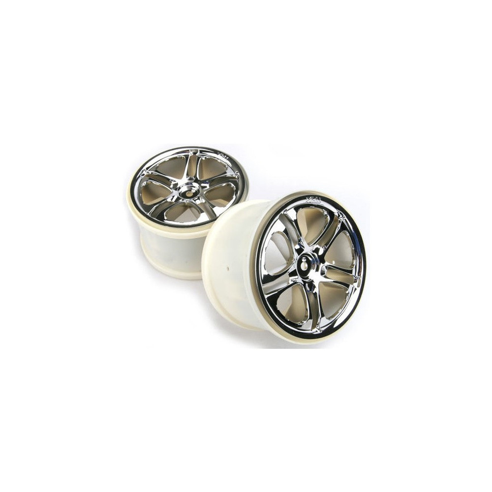 Univerzális küllős keréktárcsa krómozott fényes. A tárcsa átmérője 96mm (3.8"), szélessége 70mm. Traxxas T-Maxx 3.3, Revo 3.3 4WD, E-Maxx, E-Revo, Summit 4WD és másokhoz. Hatszög 14mm.