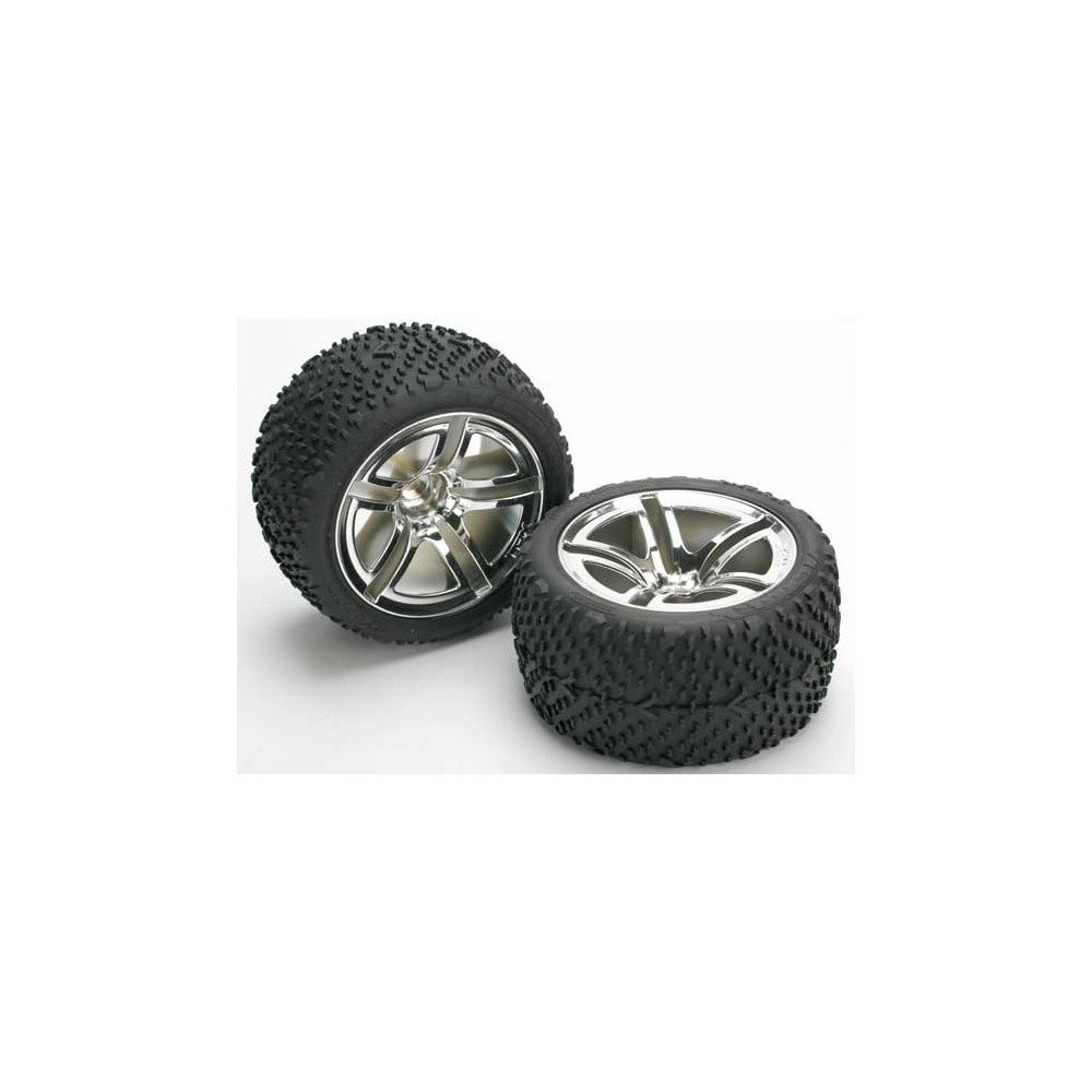 Komplett kerekek RC autókhoz. Krómozott dupla küllős kerekek Victory gumiabroncsokkal és betéttel. Tárcsa mérete 73x48 mm. Teljes méret 110x53 mm. A hordozó 12 mm-es hatszögletű, 18 mm-es eltolással.