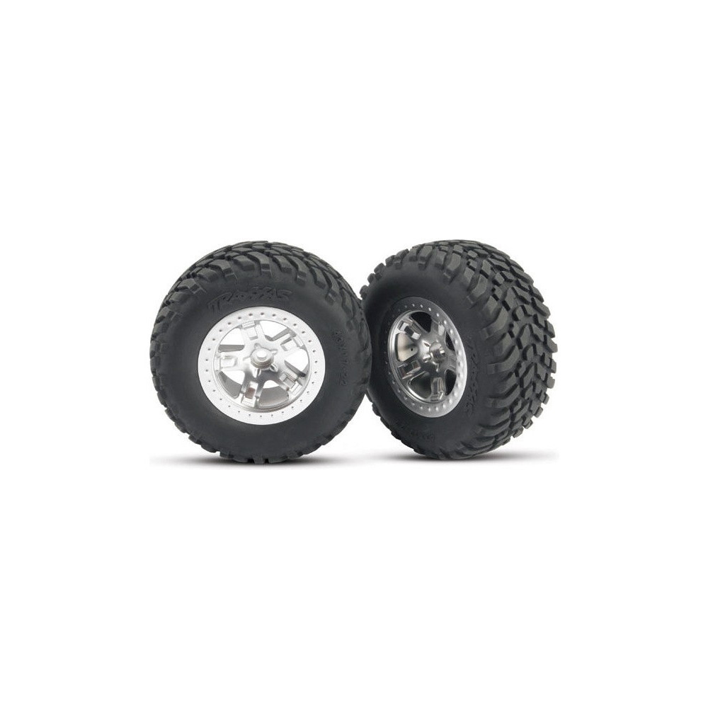 Teljes hátsó kerekek 2WD, első és hátsó kerekek 4WD Traxxas Slash-hez. Ezüst keréktárcsák BFGoodrich® gumiabroncsokkal és betéttel.