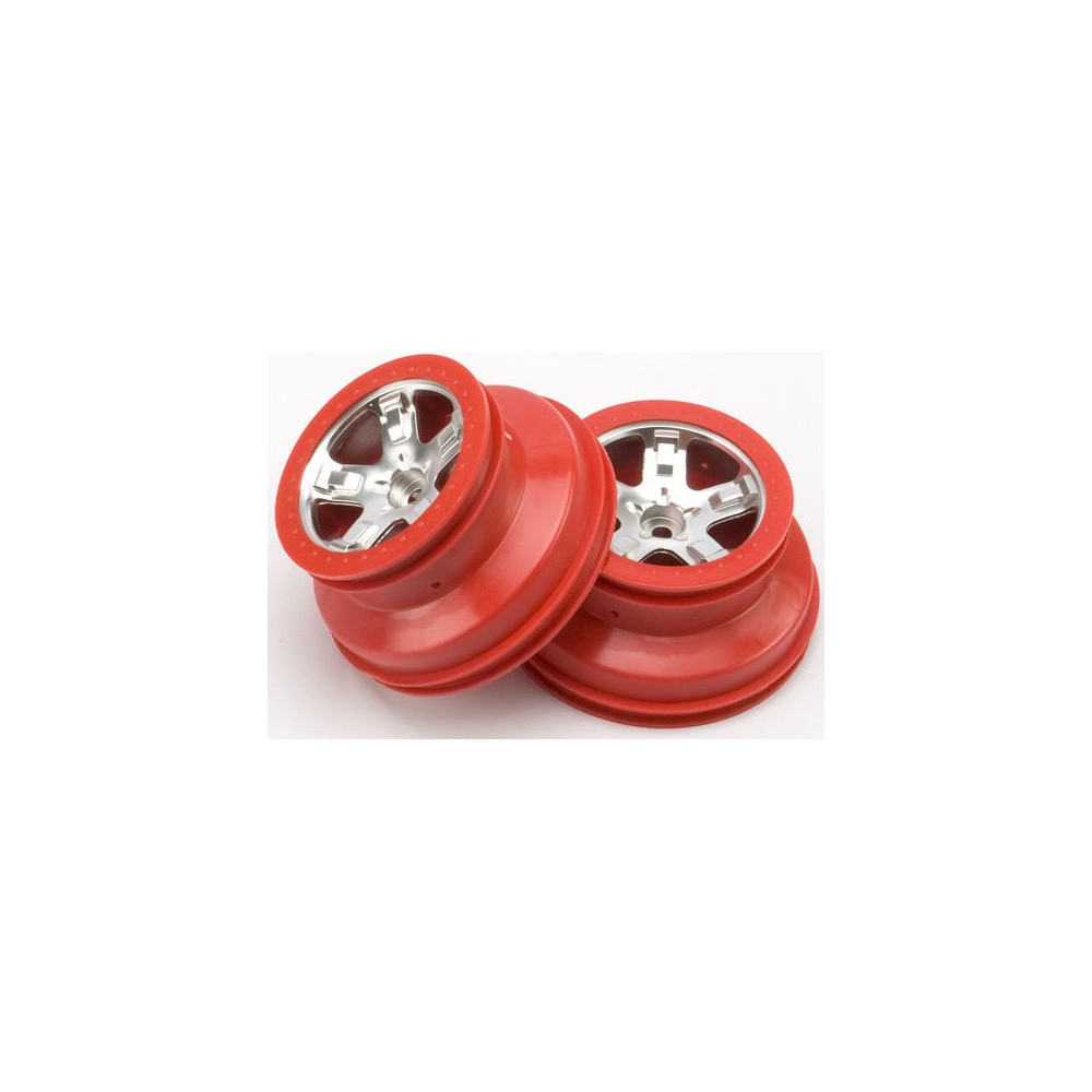 2WD első SCT kerekek matt krómozott, piros felnivel. Kettős tárcsa átmérője 2,2/3,0", szélessége 41mm. Traxxas Slash 2WD autókhoz. Hatszög 12mm.