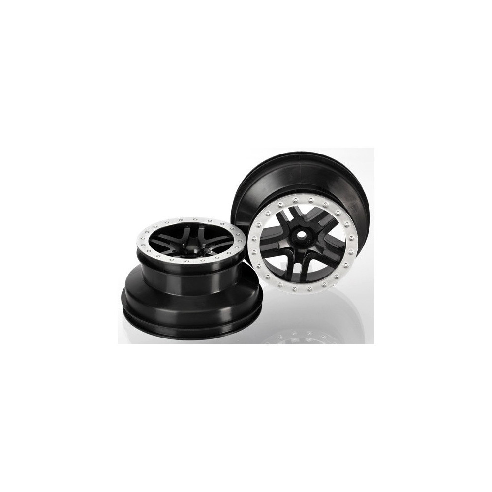 Keréktárcsa meghajtott tengelyhez (elöl/hátul 4WD, hátul 2WD) Traxxas Slash/Slayer 1:10 autókhoz. SCT Split Spoke kialakítás, matt króm.