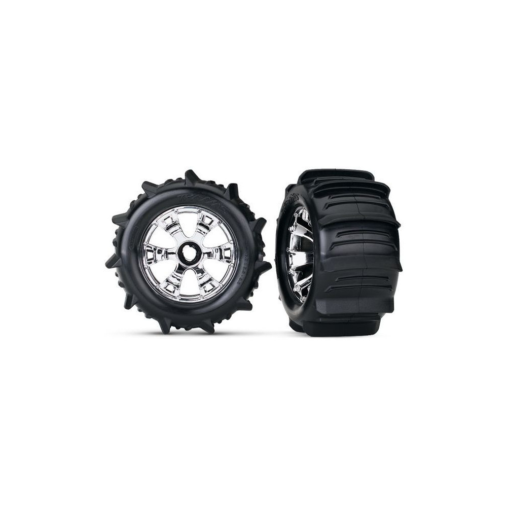 Teljes kerekek. Geode krómozott kerekek lapátkerékkel 1:8 méretarányú RC modellautókhoz (2 db a csomagban). A lapátkerék alkalmas homokra, hóra vagy vízre.