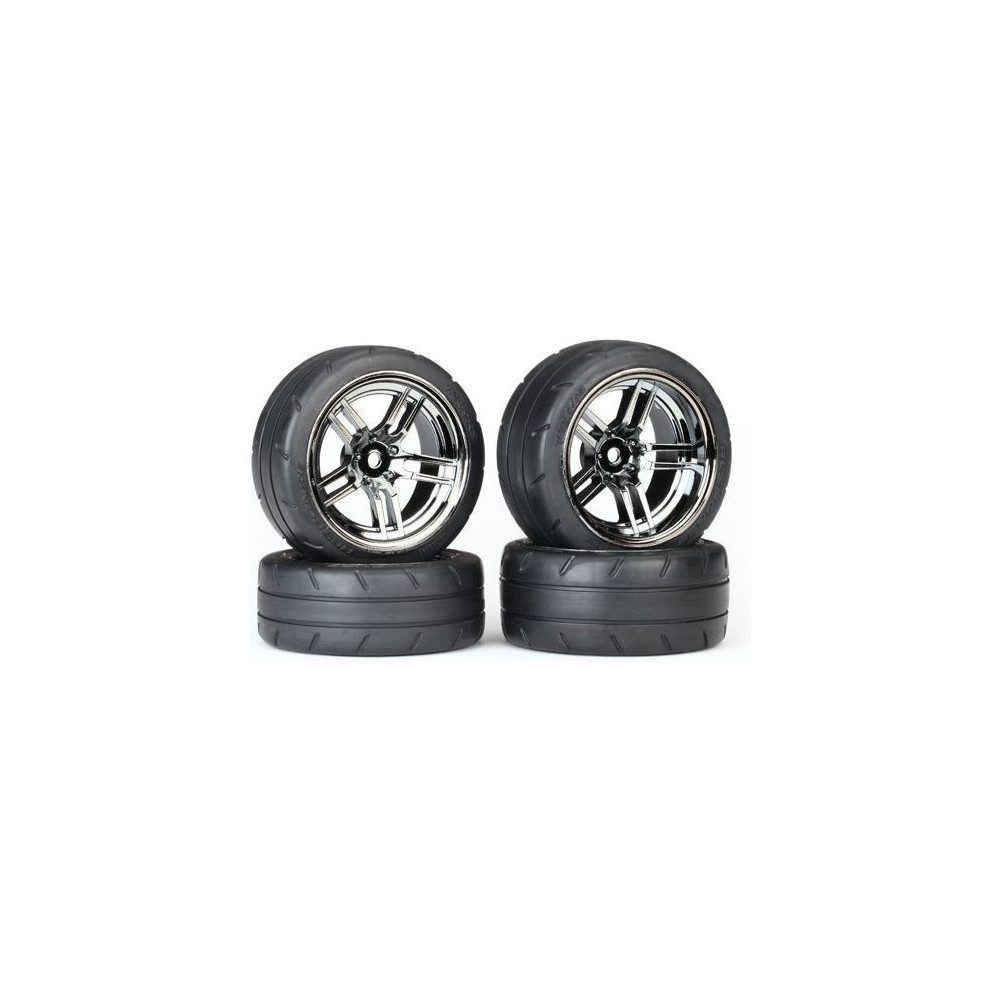 Komplett első kerekek a Traxxas 4-Tec 2.0 RC autó modellekhez. Fekete krómozott, osztott küllős kerekek Response gumiabroncsokkal (2 db a csomagban). ø53x26 mm-es kerékméret. Teljes méret ø65x26 mm. A hordozó 12 mm-es hatszögletű, 14 mm-es eltolással.