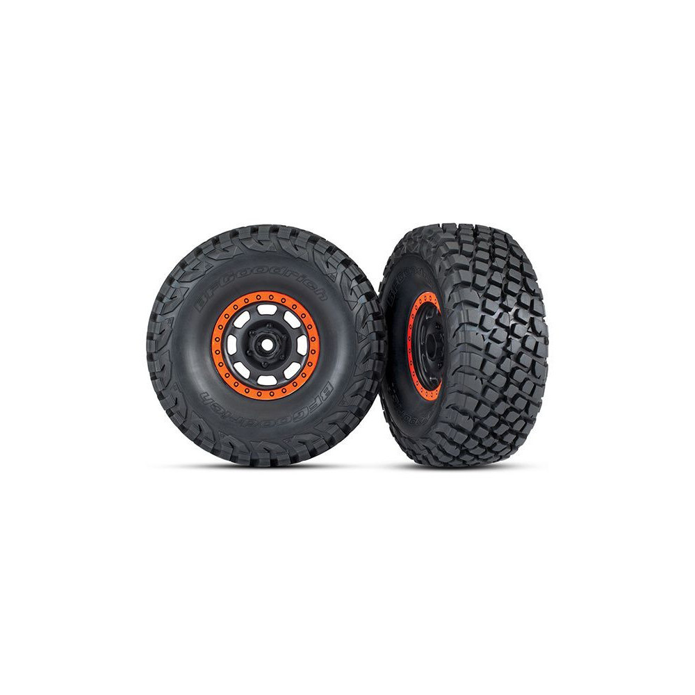 Teljes univerzális kerekek a Traxxas Unlimited Desert Racerhez. Desert Racer® kerekek fekete színben, narancssárga felnikkel és Baja KR3 gumikkal (2 db csomagonként).