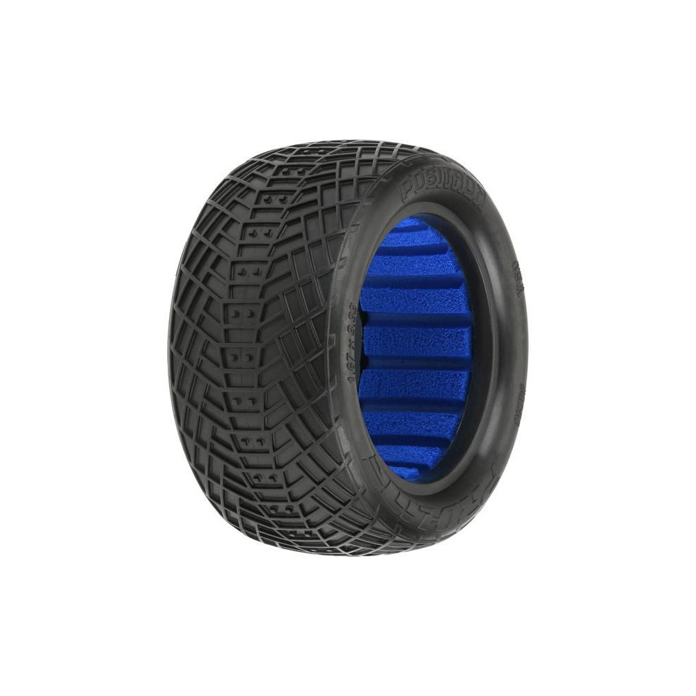 Gumiabroncsok Pro-Line Positron 2.2" Off-Road Buggy - hátsó, 1:10-es RC modellautókhoz. Méretek: ø85x42 mm. M4 keverék (szuper lágy). Zárt cellás betét.