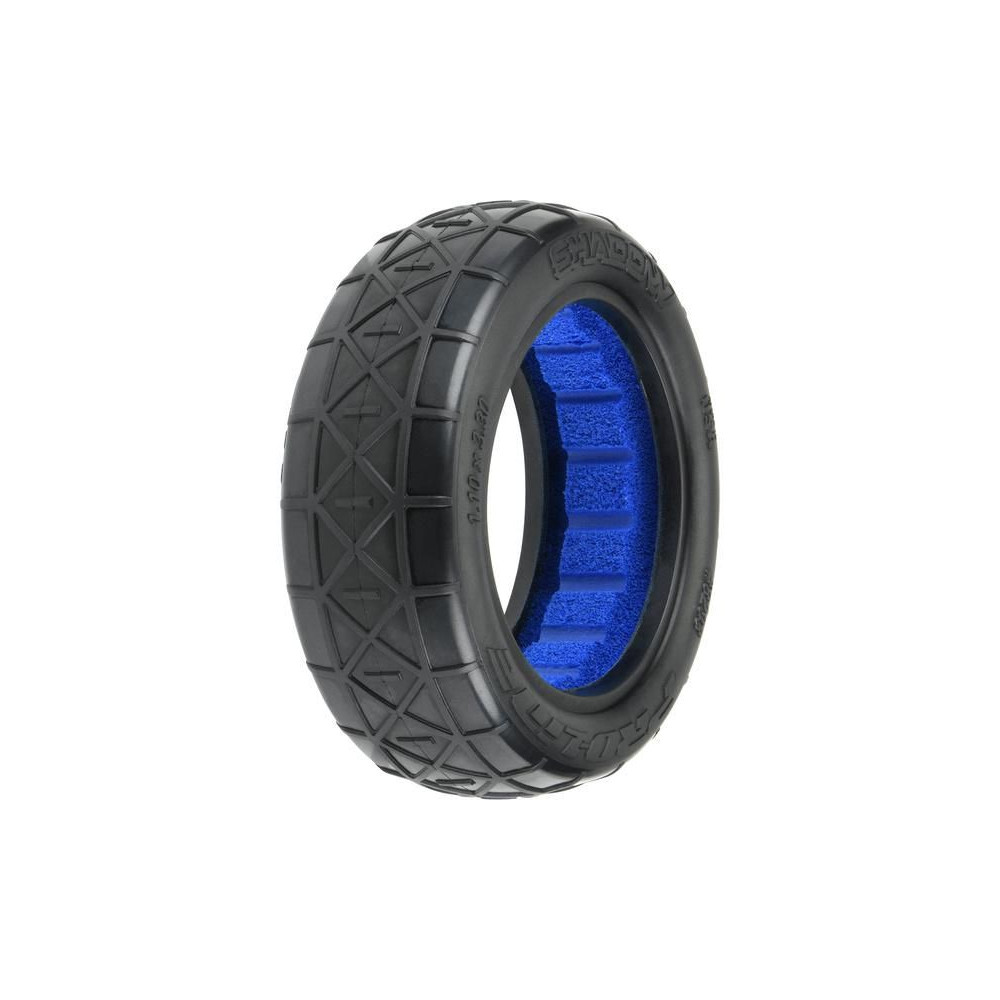Gumiabroncsok Pro-Line Shadow 2WD 2.2" Off-Road Buggy - elöl, 1:10-es RC modellautókhoz. Méretek: ø84x28 mm. S3 összetétel (lágy). Zárt cellás betét.