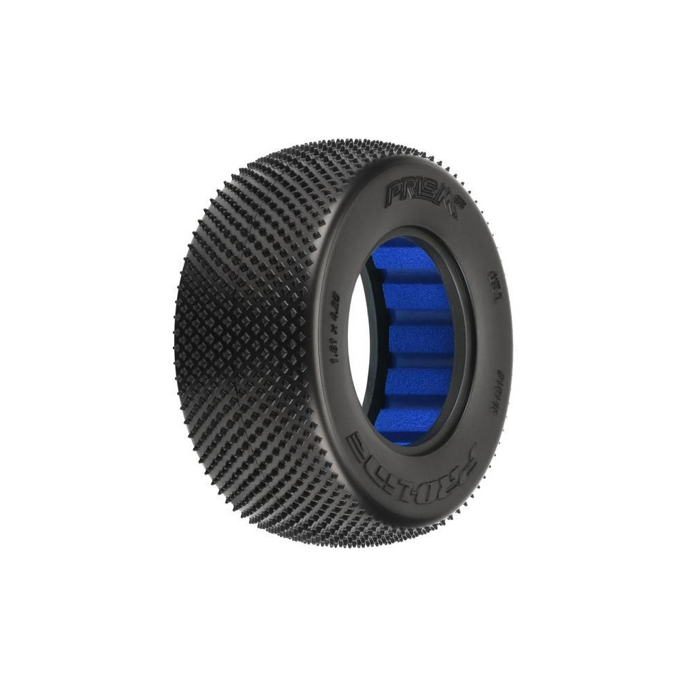 Pro-line 2.2/3.0" Prism CR3 Carpet Short Course hátsó gumiabroncsok (2 db), RC modellautókhoz 1:10 Short Course Truck. Méretek ⌀108x46mm. CR3 keverék (Medium Carpet). Zárt cellás betét.