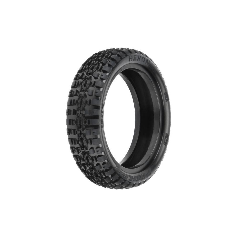 Gumiabroncsok Pro-line 2.2" Hexon CR4 Carpet 2WD elöl (2 db), RC autómodellekhez 1:10 Buggy szőnyegen való versenyzéshez. Méretek ⌀76x22mm. CR4 gumiösszetétel (puha szőnyeg).
