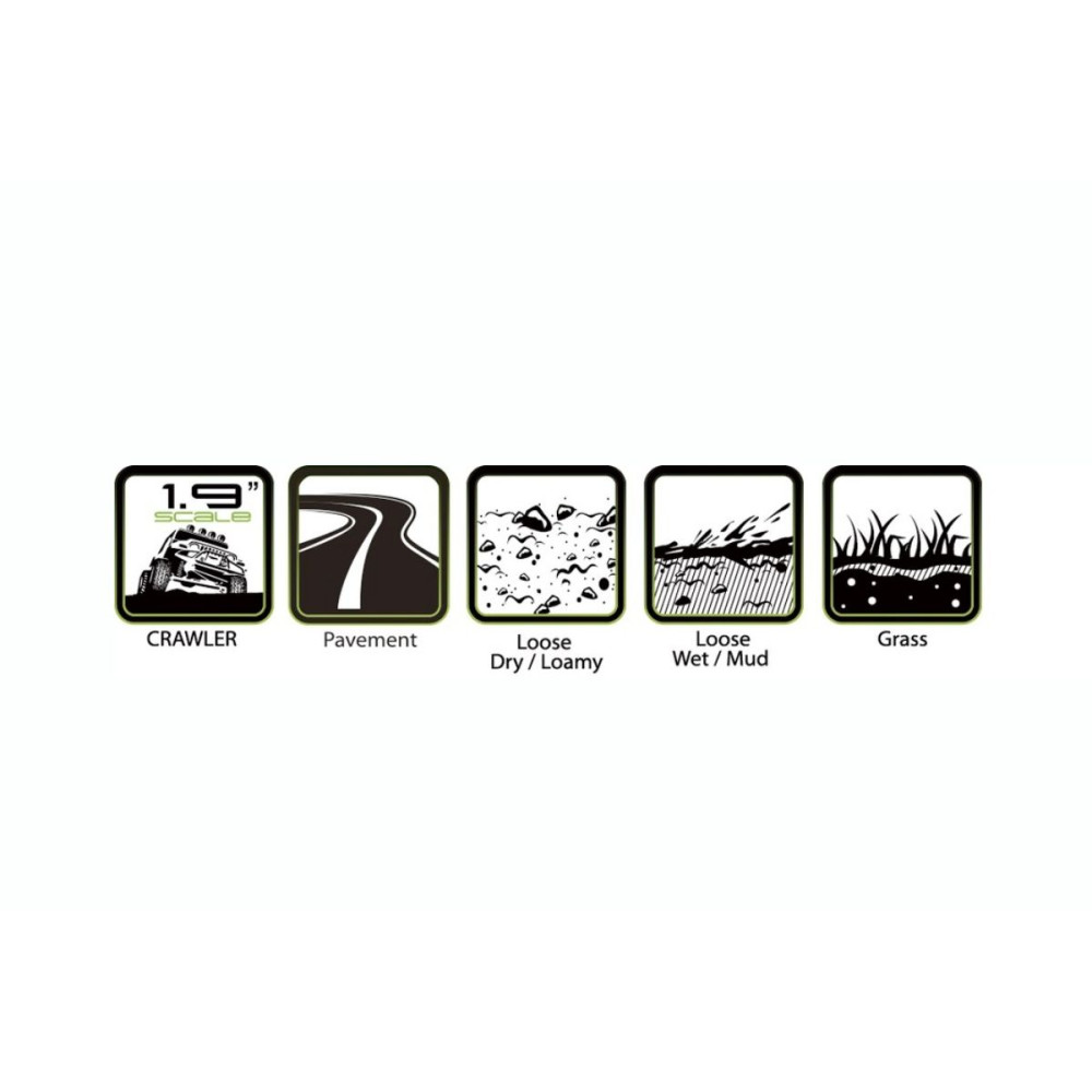 Univerzális gumiabroncsok crawler/expedition 1/10-es járművekhez, száraz és nedves körülmények között, de igazából bármilyen felületre alkalmasak.