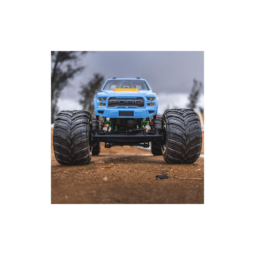- Realisztikus gumiabroncs-hornyok, amelyek utánozzák a teljes méretű, módosított monster truck gumiabroncsokat