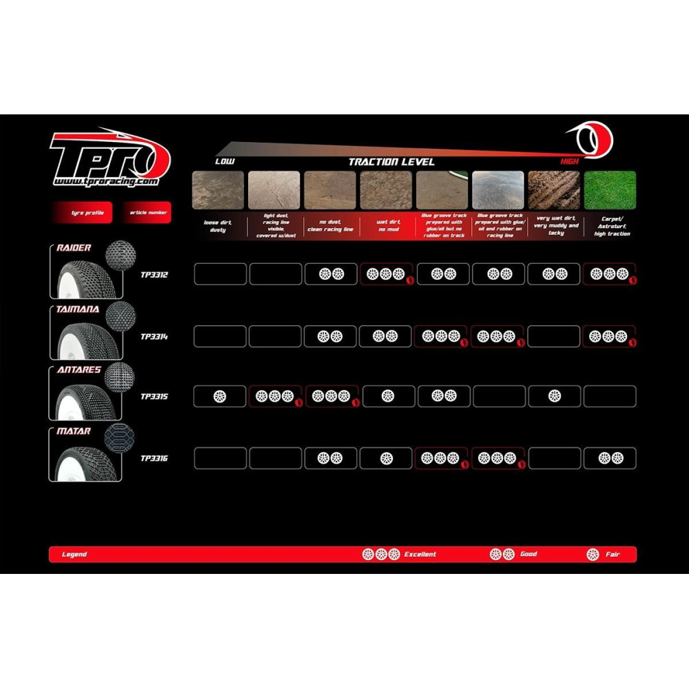 A TPRO SNIPER gumiabroncs a népszerű TPRO SKYLINE gumiabroncs könnyű változata is. A SKYLINE-hoz hasonlóan a SNIPER is számos apró, négyzet alakú csapból áll, amelyek nagyobb távolságra vannak elrendezve az abroncson, mint a SKYLINE. Ennek az az előnye, hogy a SNIPER már egy vékony porréteggel is optimálisan működik, és a tapadás és az oldalirányú vezetés tökéletes kombinációját képviseli. A SNIPER gumiabroncs a nagyon hosszú élettartamával is lenyűgöző. Ez meggyőzővé teszi a végleges abroncsot, amit már számos győzelemmel bizonyított.