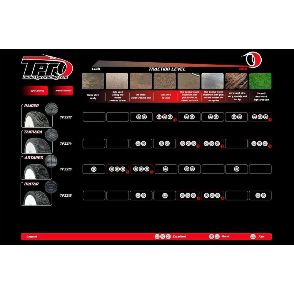 A ZR keveréket T2-Közepes, T3-Lágy és T4-Szuperlágy keménységben kínáljuk. Megfelelő adalékanyagok segítségével a ZR keverék agyag változatban is kapható C3-Lágy és C4-Szuperlágy keménységben. Végül pedig, rendkívül párás és nedves körülményekre a Wet változatot kínáljuk W5-Ultra Soft kivitelben. Így több mint 60 különböző TPRO gumiabroncs közül választhat. Biztosan minden felhasználási célra megtalálja az ideális gumiabroncsot.