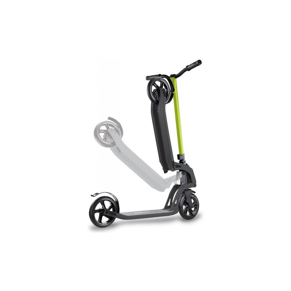 A robogó egyedülálló összecsukható rendszerrel van felszerelve. A szabadalmaztatott dugattyú megkönnyíti és gyorsabbá teszi az összecsukást. Csak "rúgd meg" a gombot, és a robogó egy másodperc alatt összecsukódik. A robogó így nagyon kompakt formába kerül, összehajtva könnyen szállíthatod, tárolhatod vagy vezetheted magad mögött.