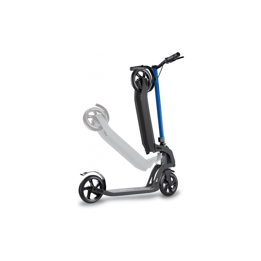 A robogó egyedülálló összecsukható rendszerrel van felszerelve. A szabadalmaztatott dugattyú megkönnyíti és gyorsabbá teszi az összecsukást. Csak "rúgd meg" a gombot, és a robogó egy másodperc alatt összecsukódik. A robogó így nagyon kompakt formába kerül, összehajtva könnyen szállíthatod, tárolhatod vagy magad mögött vezetheted.