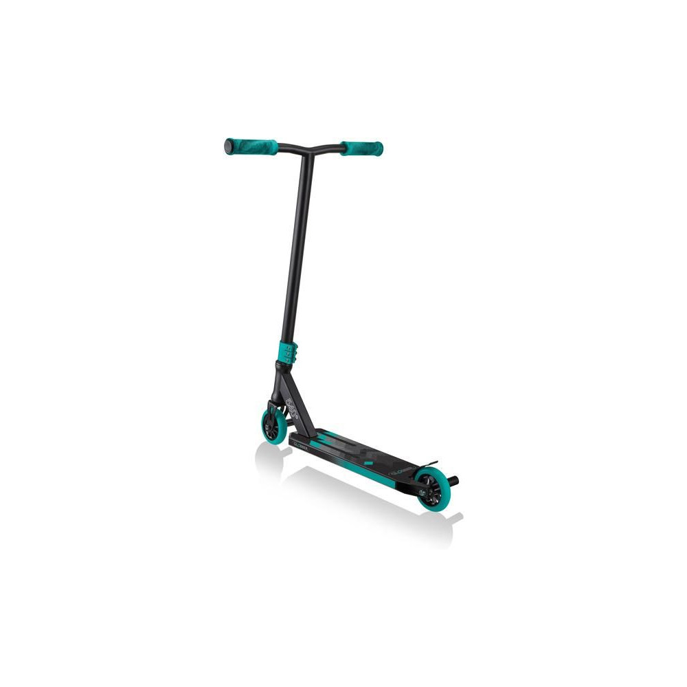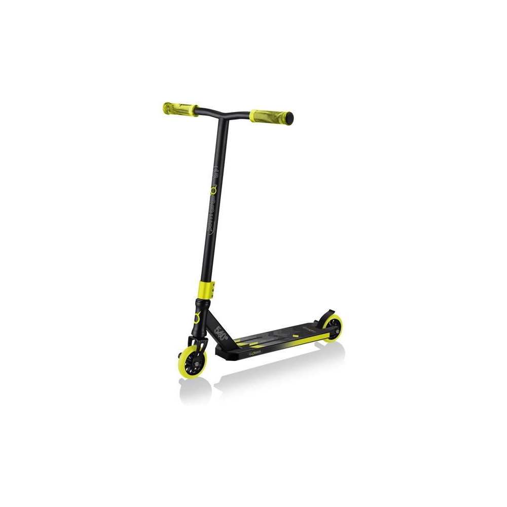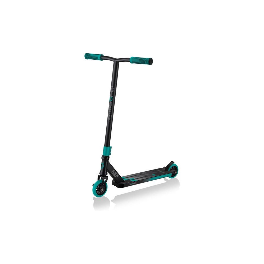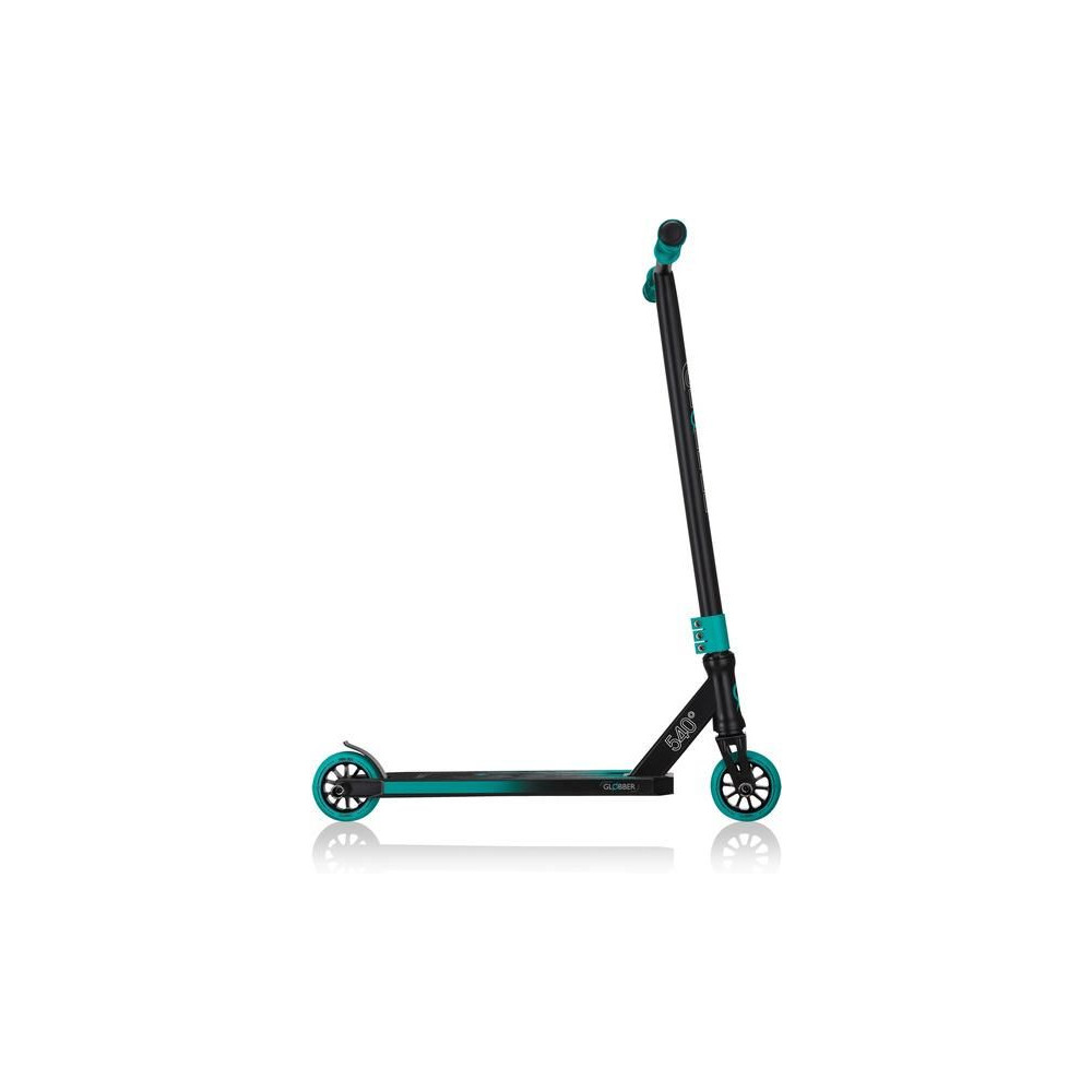 Scooter Globber - GS 540, 8 éves kortól és tizenéveseknek, akik a lovaglás mellett freestyle trükköket is szeretnének tanulni. Acél erősítésű első villa, hármas kormányrögzítő, minőségi 100 mm-es kerekek 88A PU keménységgel, alumínium maggal és kiváló minőségű 680ZZ ABEC 7 csapágyakkal, lábtartók.