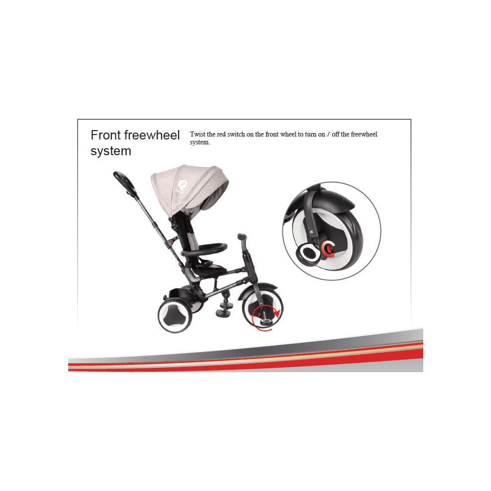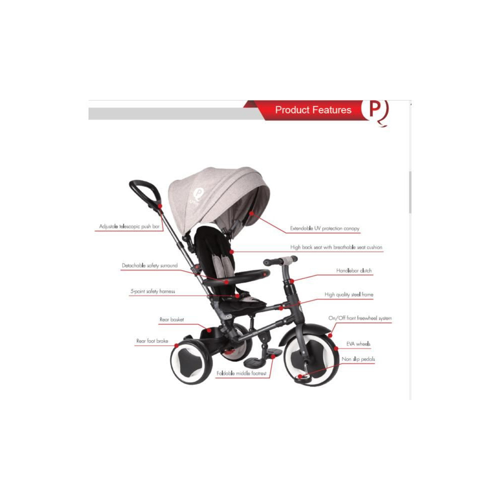 Ez a tricikli együtt fog nőni a gyermekével! Először meglovagolhatja gyermekét, és rögzítheti a pedálokat, hogy ne pörögjön. Miután a gyermek megszokta, már egyedül is pedálozhat és lovagolhat, és a szülői rúddal rögzítheted. Ha a gyermek ezt már elsajátította, leszereled a szülői vezető rudat és a háttámlát, és máris egy teljes értékű triciklivel rendelkezel.