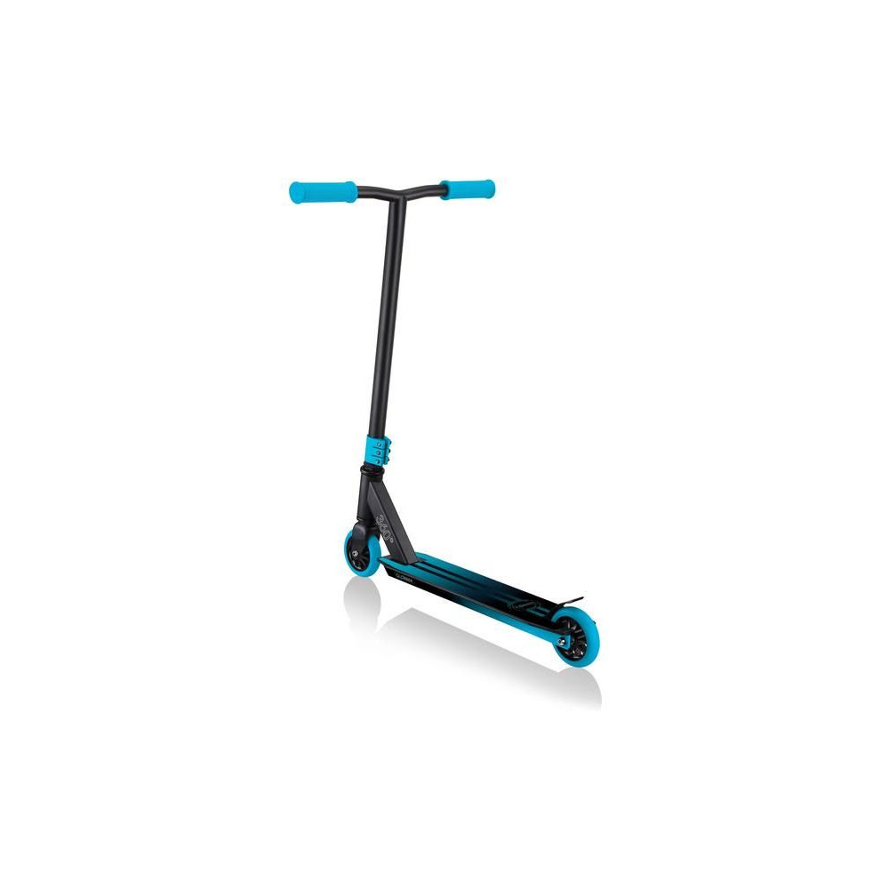 Scooter Globber - GS 360, 6 éves kortól és tizenéveseknek, akik a lovaglás mellett freestyle trükköket is szeretnének tanulni. A robusztus acél megerősített első villa, a kiváló minőségű 100 mm-es kerekek 88A PU keménységgel, alumínium maggal és a kiváló minőségű 680ZZ ABEC 7 csapágyakkal biztosítják a maximális tartósságot.