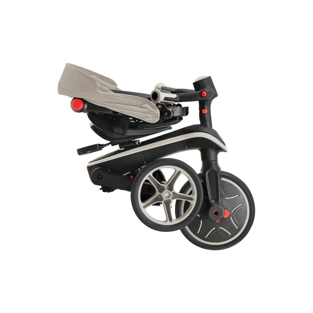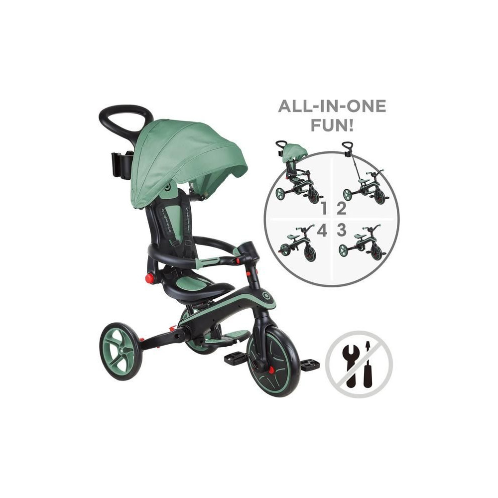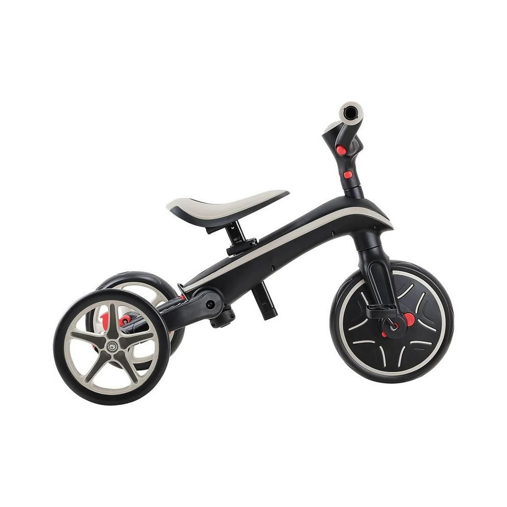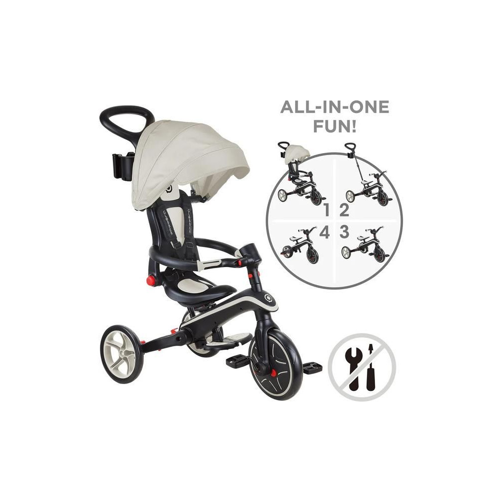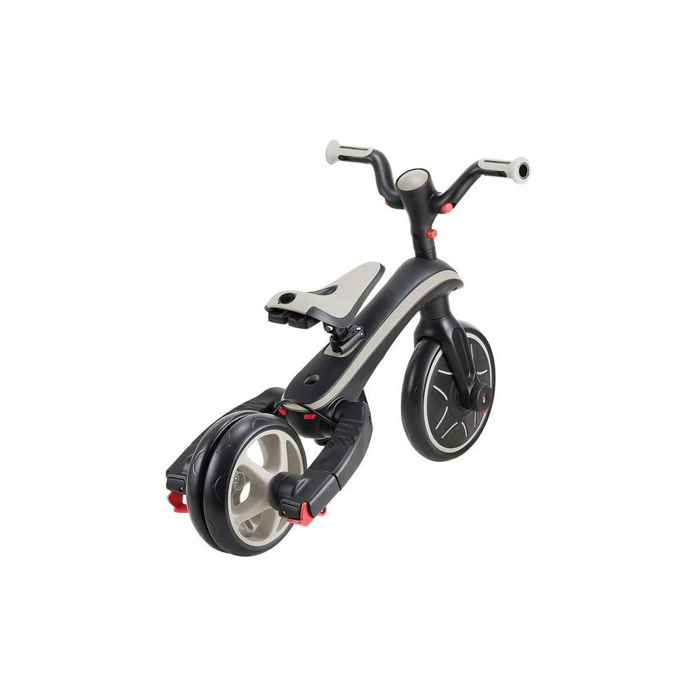 A Globber Explorer termékcsaládot úgy tervezték, hogy ne kelljen szerszámokat használnia. A tricikli típusát könnyedén megváltoztathatja mindössze gombokkal és gombokkal, amelyek zseniálisan helyettesítik a hagyományos anyákat és csavarokat.