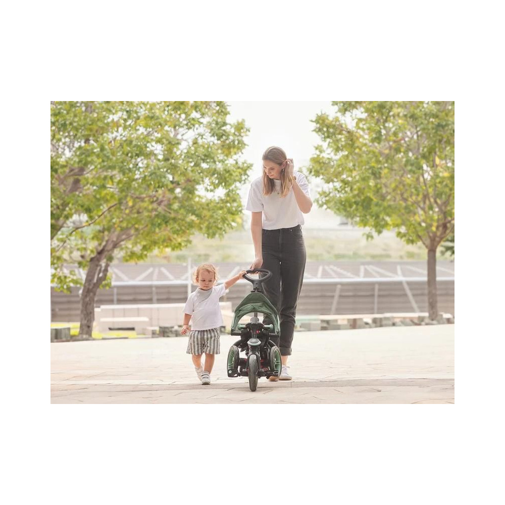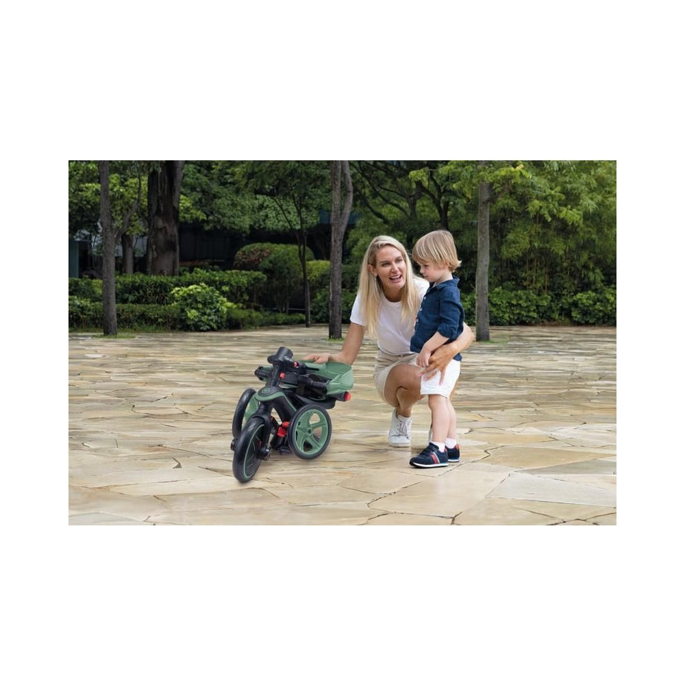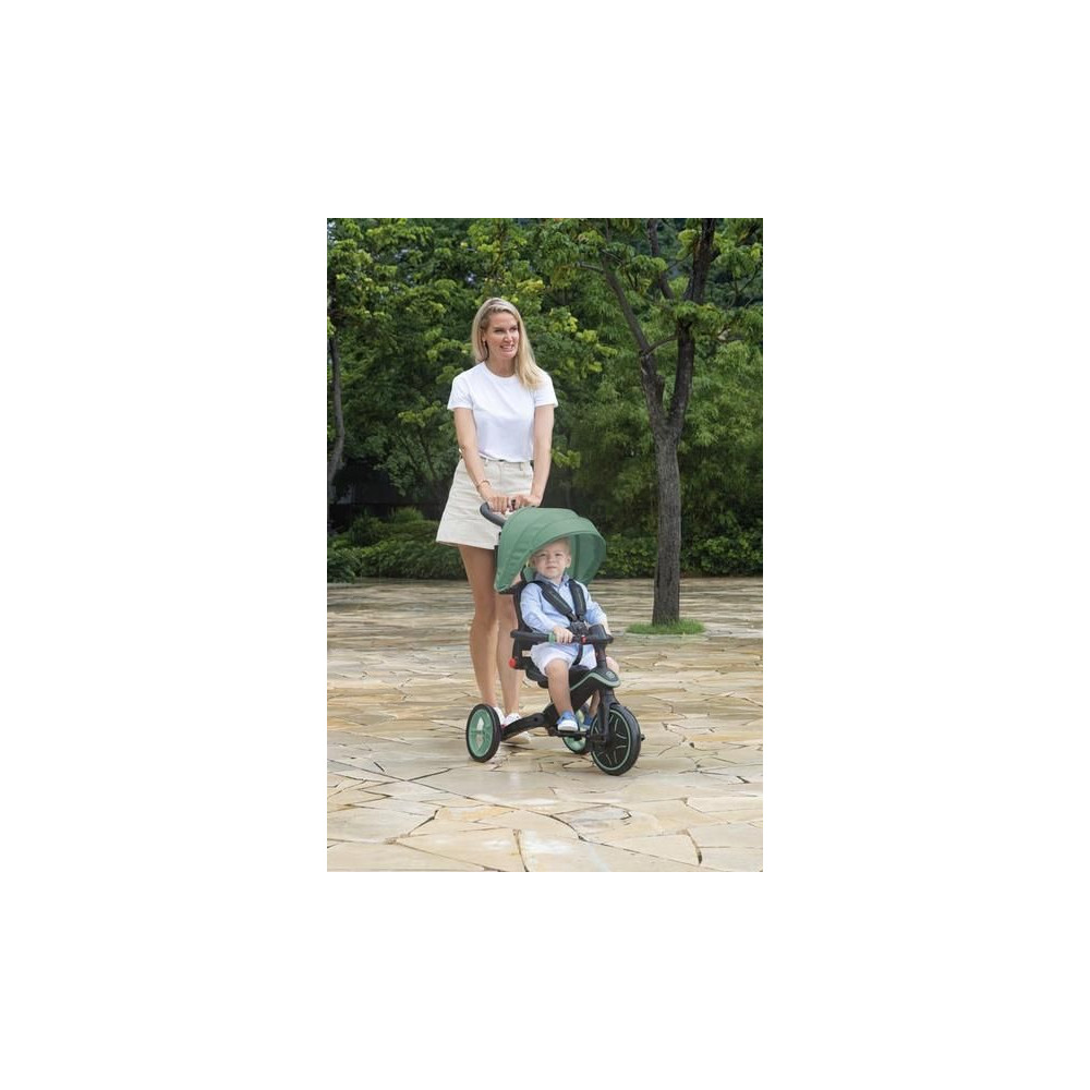 A hihetetlenül sokoldalú Globber Explorer Trike 4in1 összecsukható trike 10 hónapos kortól 5 éves kor ig kíséri gyermekét. Négy építési lehetőség: babakocsi kisgyermekeknek, trike fogantyúval a szülőknek, trike és roller. Szerszámok nélkül válthat a háromkerekű és a roller között. 5 pontos öv, napellenző és praktikus összecsukható mechanizmus.