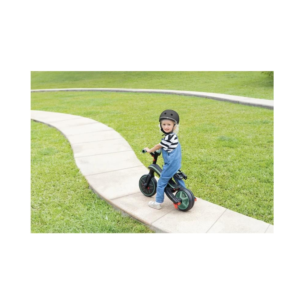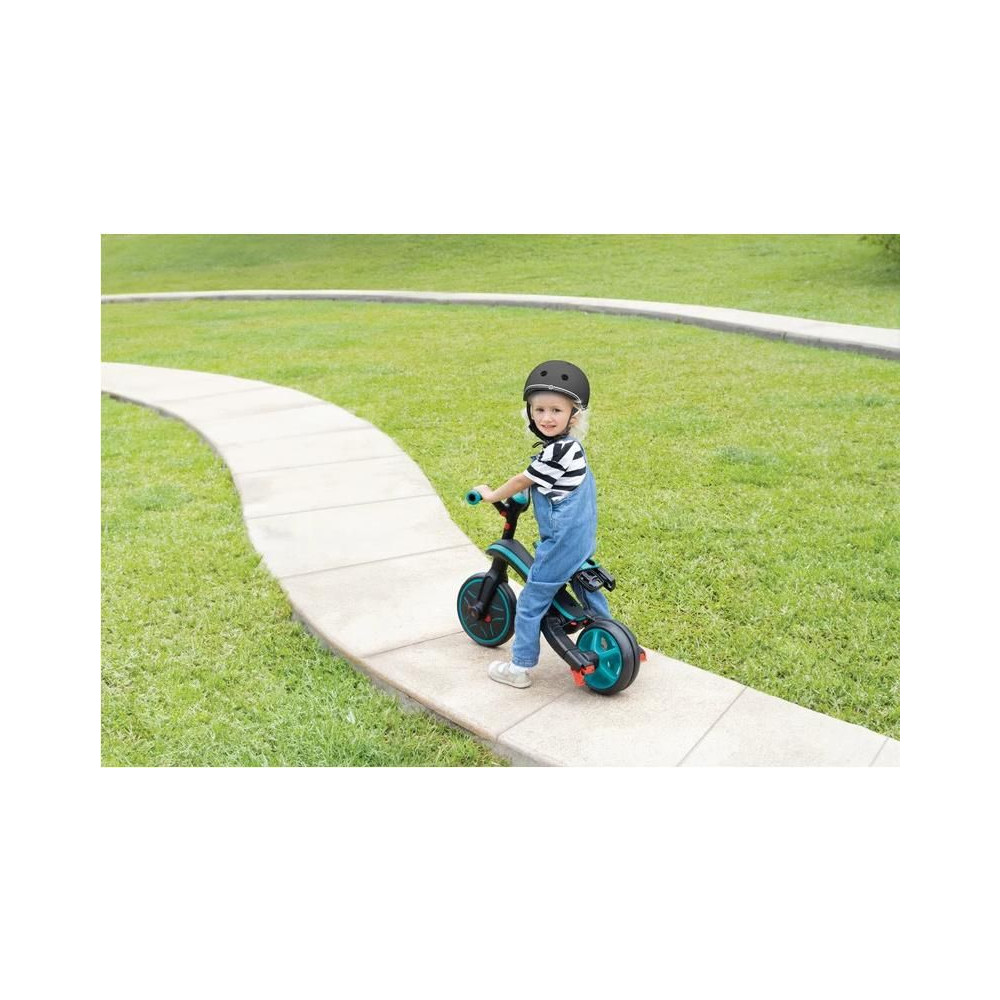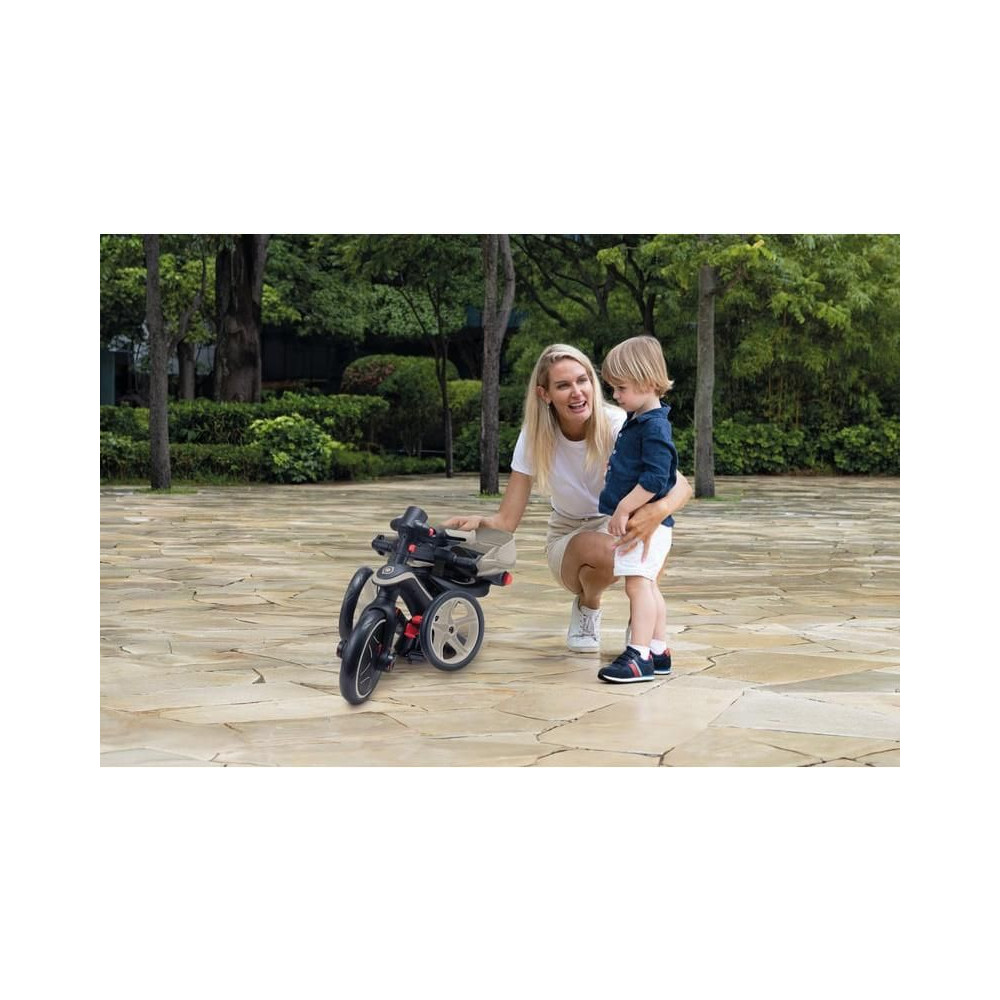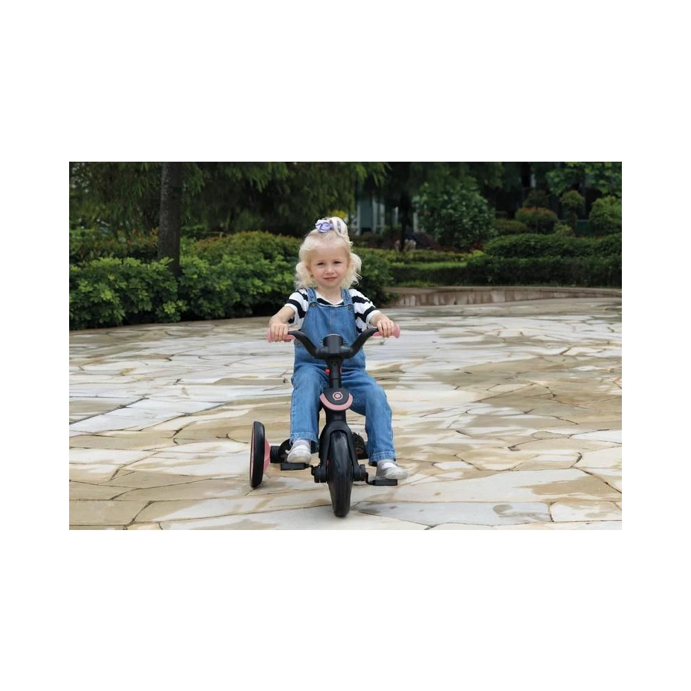A Globber tricikli gyerekeknek egyedülálló, mert ez az egyetlen tricikli a piacon, amely a szabadalmaztatott kerékmechanizmusnak köszönhetően robogóvá alakítható. A szülők gyorsan és egyszerűen, szerszámok nélkül cserélhetik a két hátsó kereket egyetlen dupla szélességű kerékre. A hátsó kerekek gombjának egyszerű elforgatásával a termék háromkerekűből ugrálóvá válhat. Minden fokozat közötti váltás szerszámok nélkül történik.