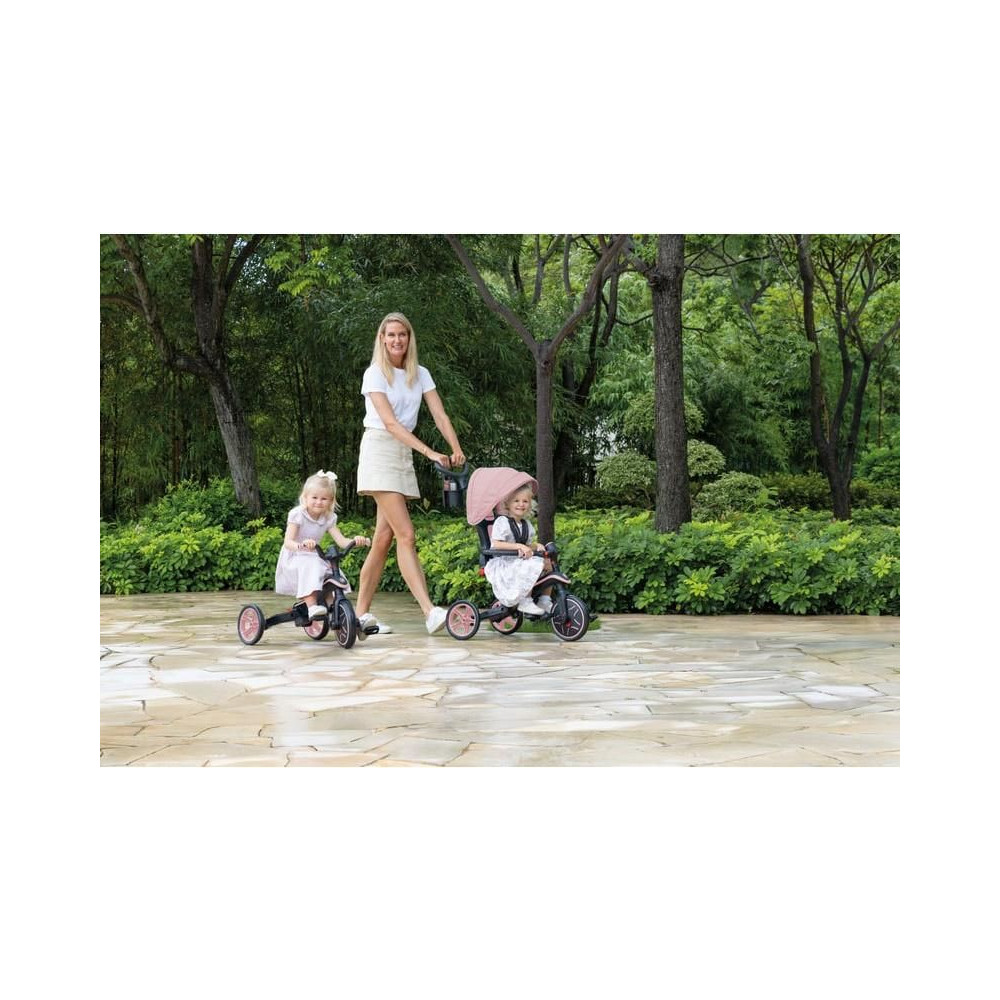 A hihetetlenül sokoldalú Globber Explorer Trike 4in1 10 hónapos kortól 5 éves korig kíséri gyermekét. Négy építési lehetőség: kisgyermekkocsi, trike fogantyúval a szülőknek, trike és roller. Típuscsere szerszámok nélkül. Öv, napellenző, összecsukható mechanizmus.