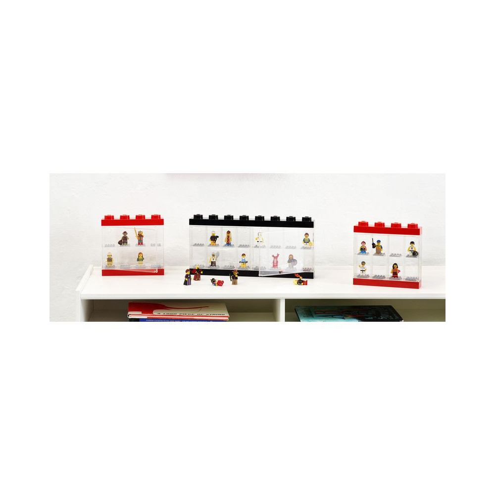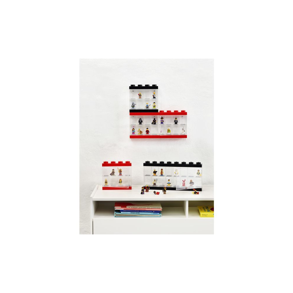 A praktikus gyűjtőszekrény lehetővé teszi, hogy a minifigurákat mindig szem előtt tartsa, és megakadályozza, hogy elveszítsék vagy összepiszkolódjanak. A szekrénybe 8 minifigura fér el, amelyeket a klasszikus LEGO betétekkel egyszerűen bepattinthatsz. A szekrény a falra is felszerelhető.