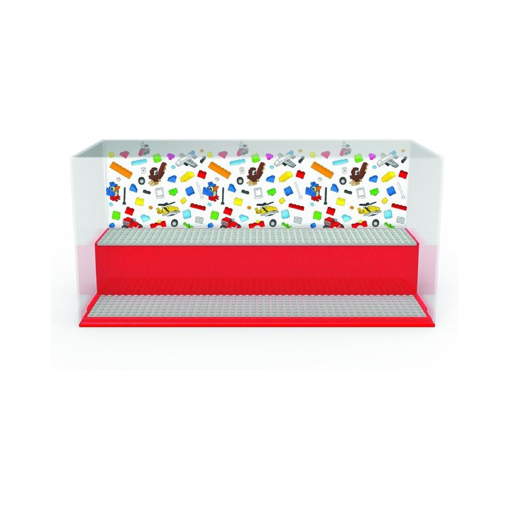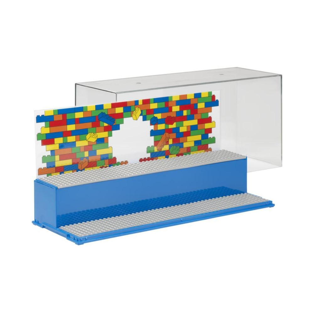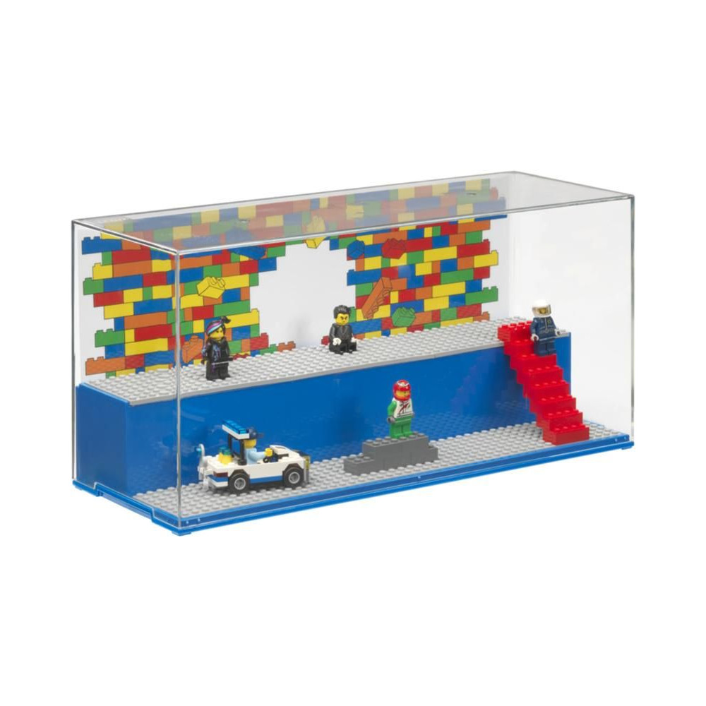 Gyűjtőszekrény kedvenc LEGO minifiguráid számára. Stílusos, teljesen zárt vitrin két lépcsővel és 6 betéttel a LEGO minifigurák behelyezéséhez. Szórakozz és tárold LEGO építményeidet ebben az új tárolódobozban. Tartalmaz 6 eredeti szürke LEGO alaplapot és két hátteret hátterekkel. Az átlátszó fedél megvédi LEGO alkotásaidat a portól.