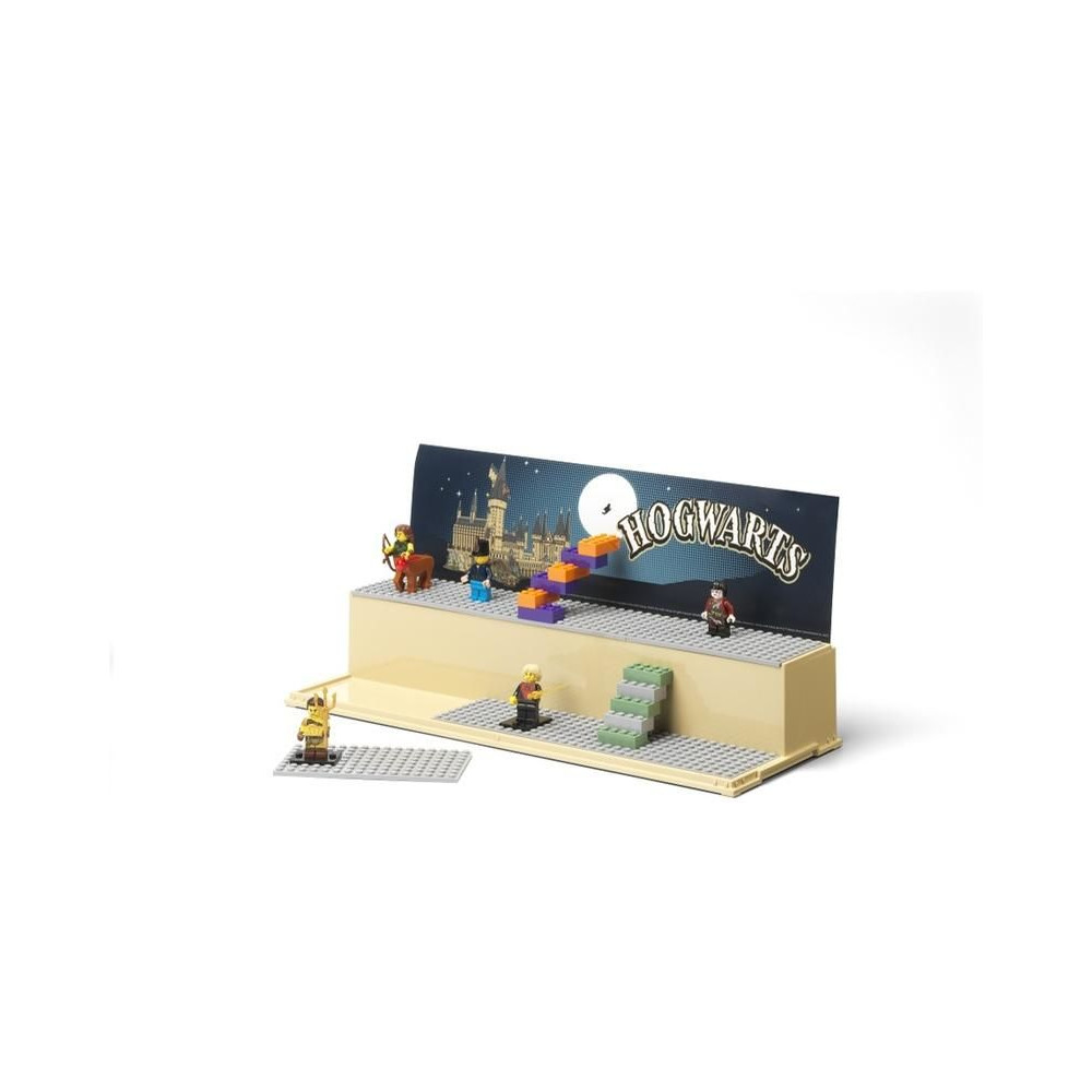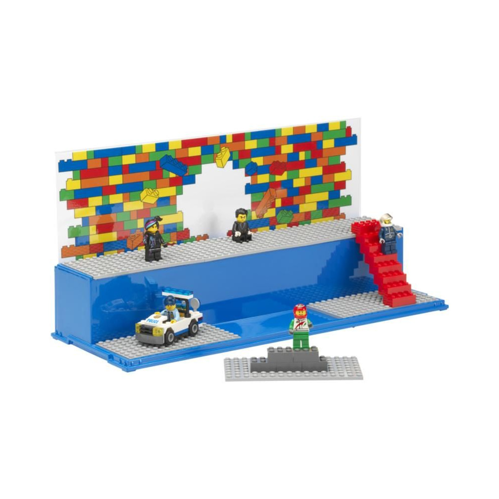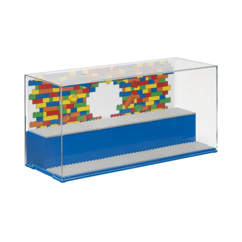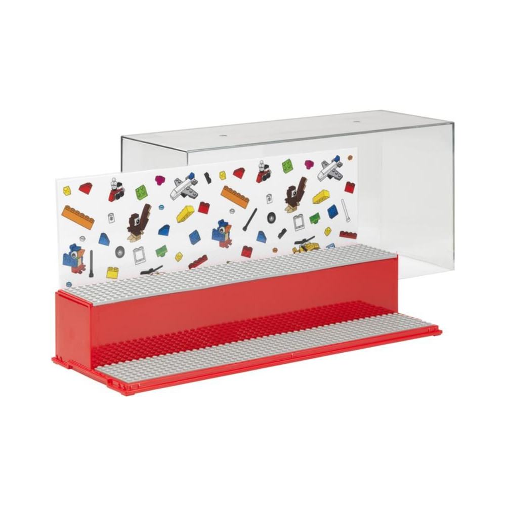 Gyűjtőszekrény kedvenc LEGO minifiguráid számára. Stílusos, teljesen zárt vitrin két lépcsővel és 6 betéttel a LEGO minifigurák behelyezéséhez. Szórakozz és tárold LEGO építményeidet ebben az új tárolódobozban. Tartalmaz 6 eredeti szürke LEGO alaplapot és két hátteret hátterekkel. Az átlátszó fedél megvédi LEGO alkotásaidat a portól.