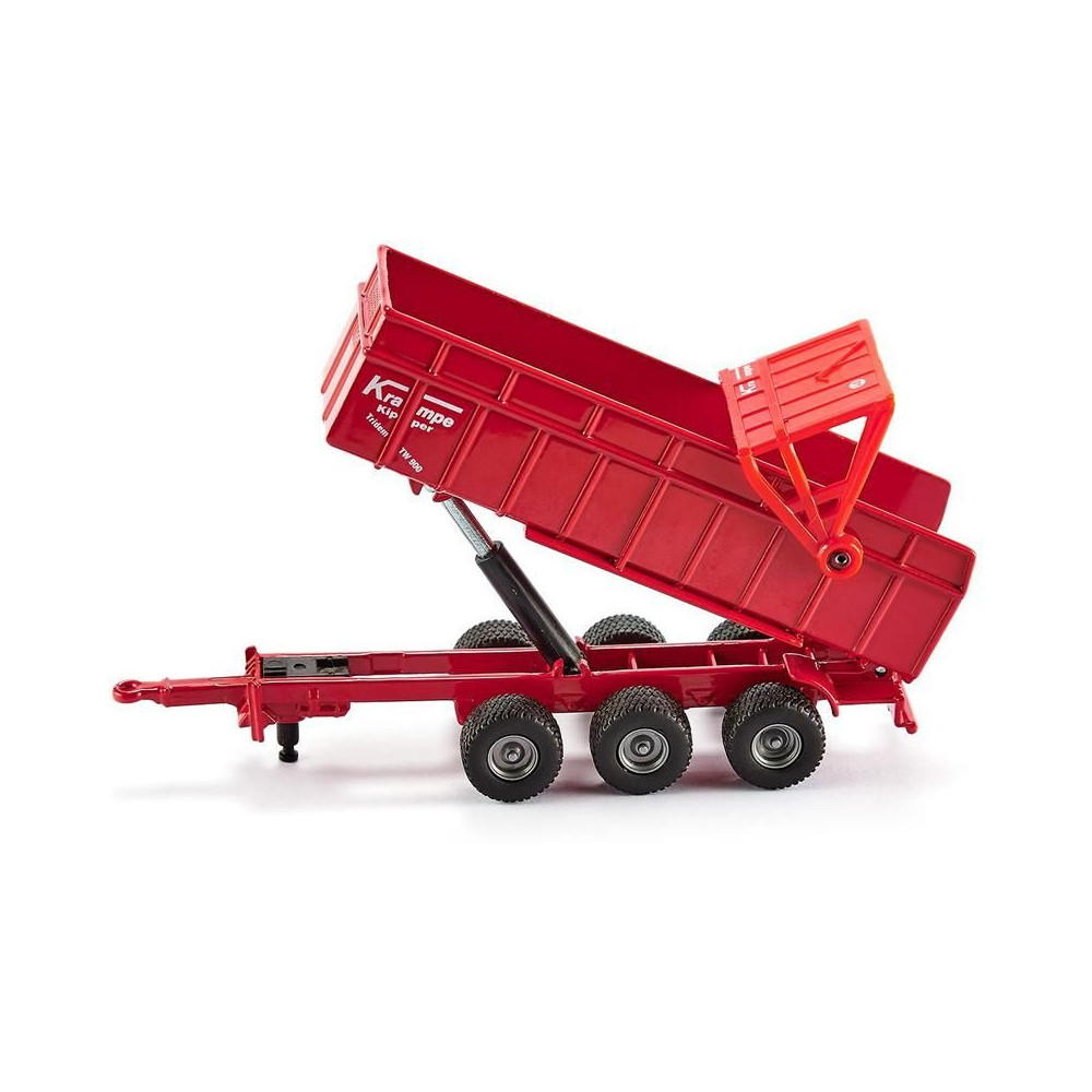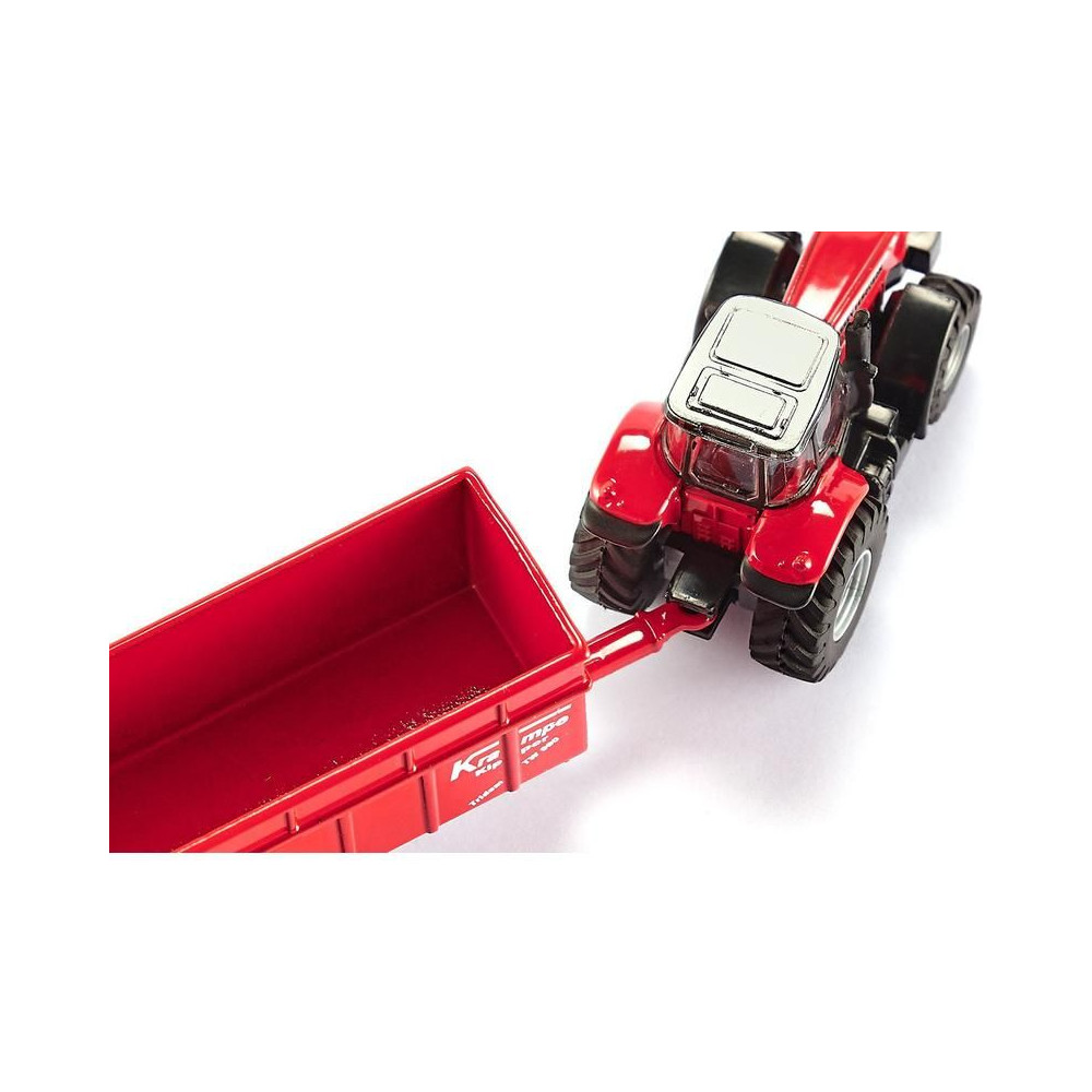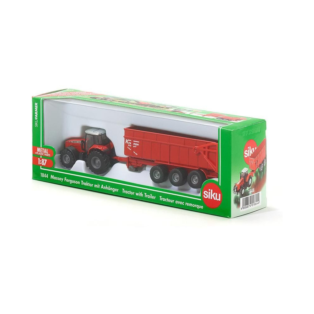 Massey Ferguson traktor fém modellje Krampe pótkocsival 1:87 méretarányban a Siku-tól. A modell gumigumikat, levehető pótkocsit tartalmaz, lehajtható motorháztetővel, műdugattyúval és csuklós orral. Játékra és gyűjtésre egyaránt alkalmas. Minőségi kivitelezés fémből és műanyagból.
