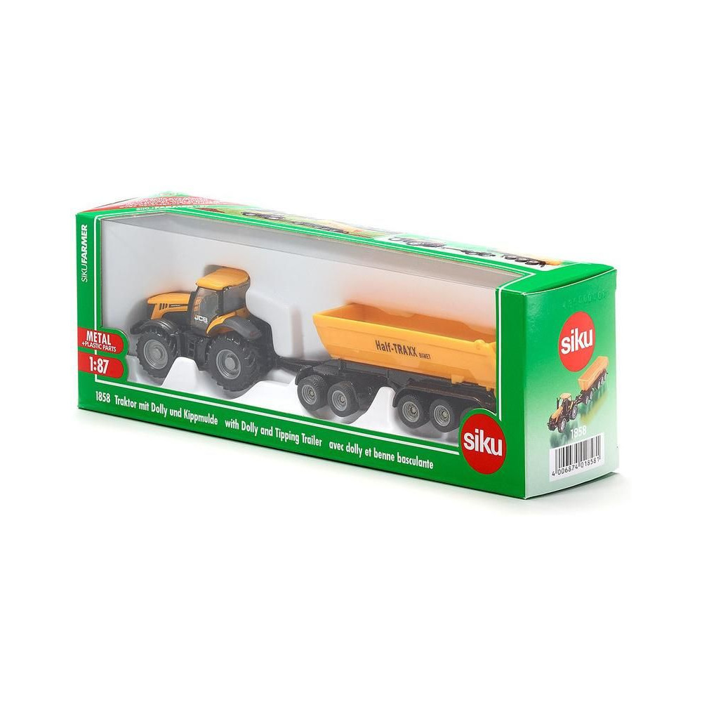 JCB 8250 vontató fémből készült modellje pótkocsival a Half-Traxx billenő pótkocsihoz 1:87 méretarányban a Siku-tól. A modell gumiabroncsokat és levehető vezetőfülke-tetőt tartalmaz, a félpótkocsi összecsukható orr-résszel ellátott, összecsukható felépítménnyel rendelkezik. Játékra és gyűjtésre egyaránt alkalmas. Minőségi kivitelezés fémből és műanyagból.