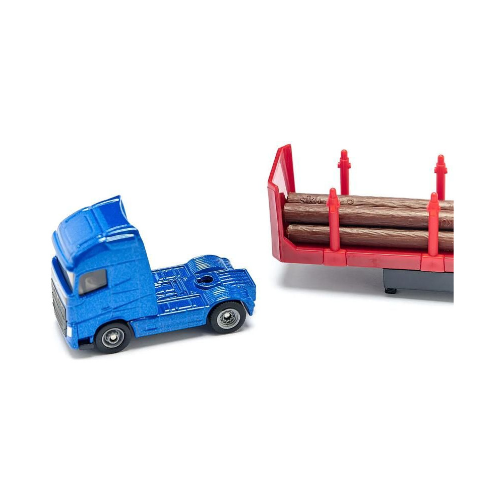 Volvo traktor fémmodellje nehéz rakományok szállítására alkalmas félpótkocsival, hossza kb. 19 cm, méretarány 1:87. A traktor átlátszó ablakokkal van felszerelve. A levehető félpótkocsi vágóhidakat és ládák modelljeit tartalmazza. Játékra és gyűjtögetésre alkalmas. Minőségi fém- és műanyag kidolgozás. Blisztermesztő dobozban csomagolva.