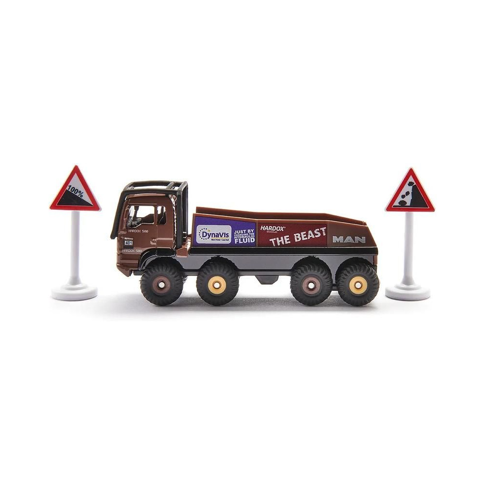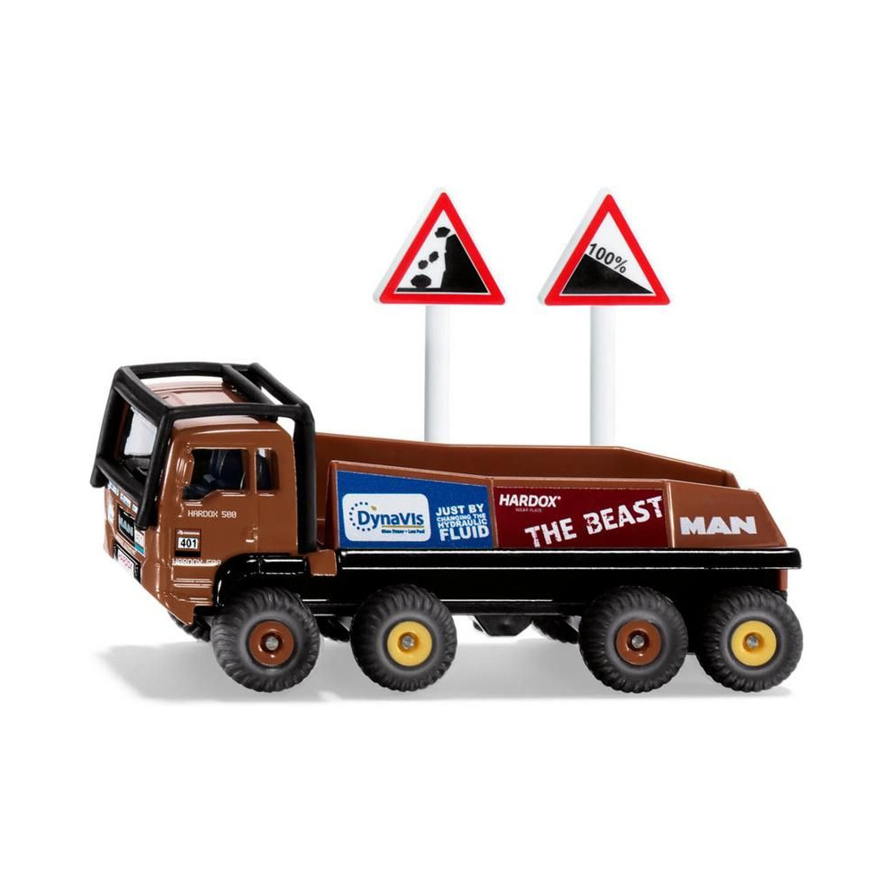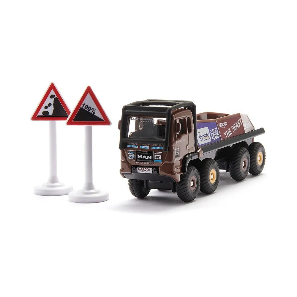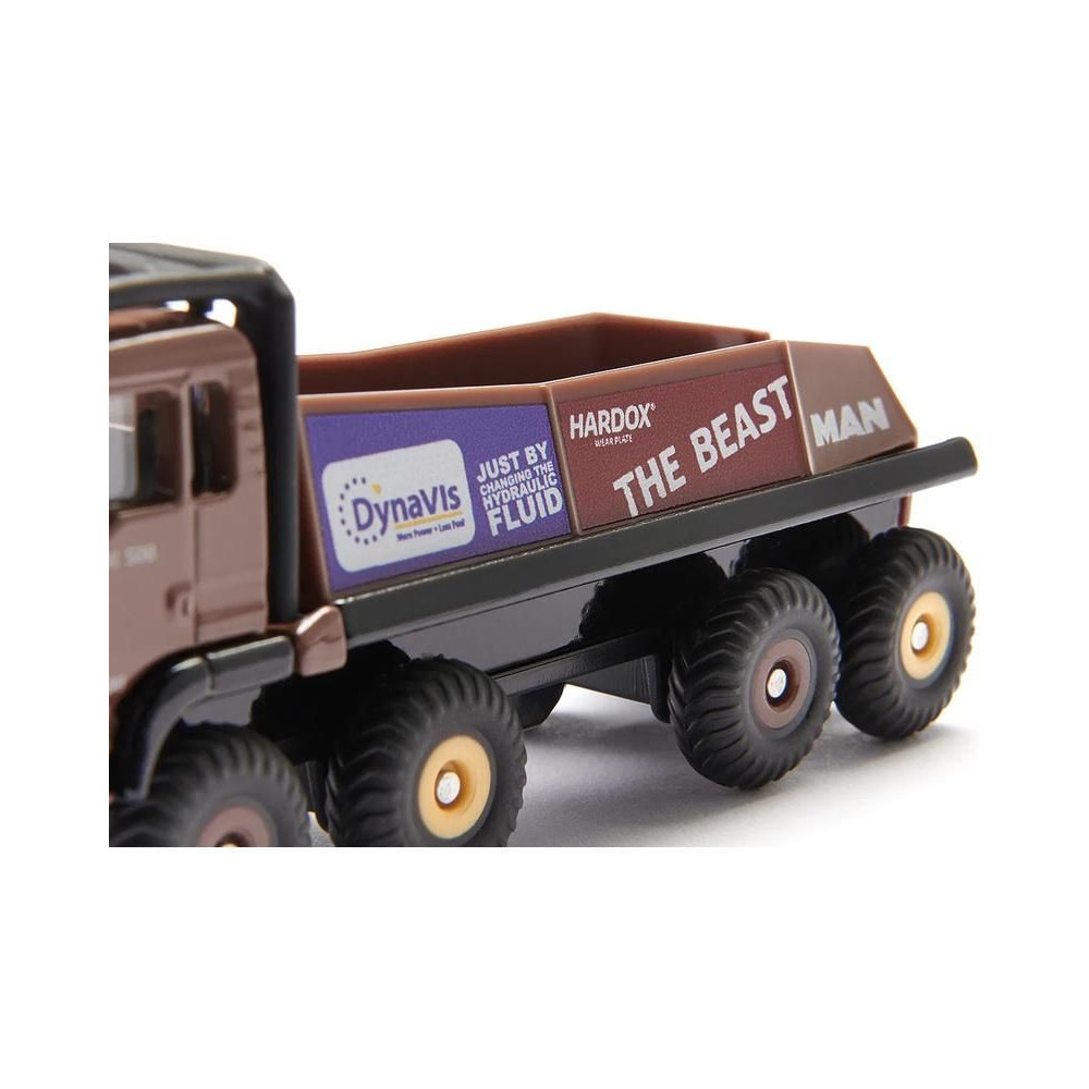A versenyteherautó-teszt különkiadás fém modellje, kb. 10 cm hosszú, 1:87 méretarányú. A nyolckerekű modell átlátszó ablakokkal és eredeti szponzori matricákkal van felszerelve. Játékra és gyűjtésre is alkalmas. A csomag két jelölőt tartalmaz, amelyekkel pályát lehet létrehozni. Minőségi fém és műanyag kidolgozás. Bliszterben csomagolva.