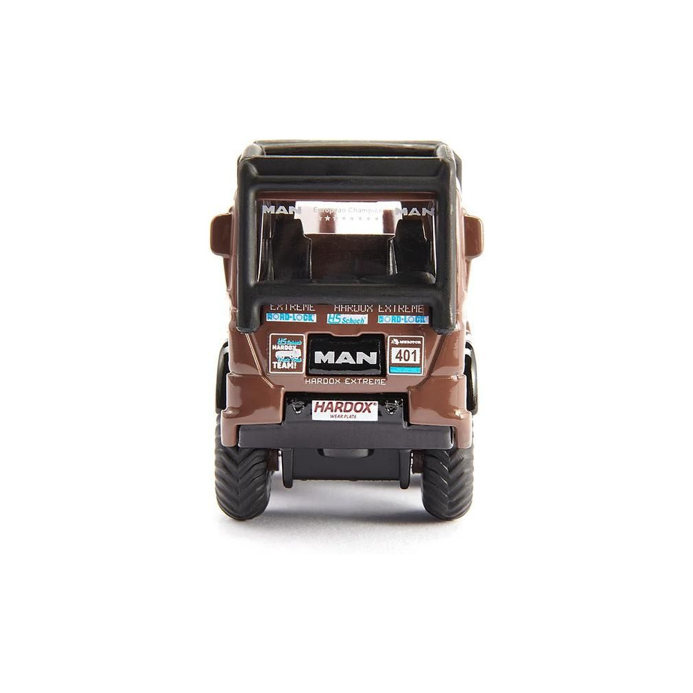 A versenyteherautó-teszt különleges MAN fémmodellje, hossza kb. 10 cm, méretarány 1:87. A nyolckerekű modell átlátszó ablakokkal és eredeti szponzormatricákkal van felszerelve. Játékra és gyűjtésre is alkalmas. A csomag két márkát tartalmaz. Minőségi fém és műanyag kidolgozás. Blisztermesztőben csomagolva.