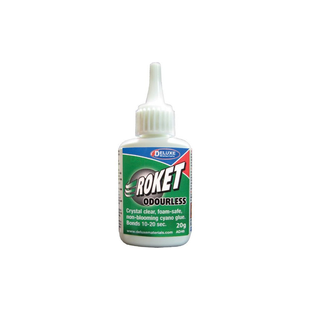 A Roket Odourless egy közepes konzisztenciájú cianokrilát ragasztó, amely szagmentesen ragaszt. 2-3 másodperccel később kötődik, mint a hagyományos cianokrilát ragasztók. A Roket Odourless nem támadja meg a habanyagokat (polisztirol, depron, polipropilén stb.), így kiválóan alkalmas ezen anyagok fakombinációkkal történő ragasztására. A kötés kevesebb mint tizenöt másodperc alatt elkészül.