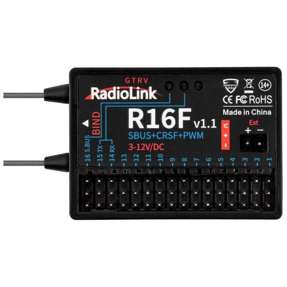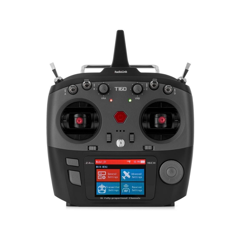 Átviteli rendszer: A T16D frekvenciaugratásos FHSS átvitelt használ, ami nagy hatótávolságot, megbízhatóságot és interferencia-tűrést biztosít. A belső RF részhez három FHSS átviteli protokoll közül lehet választani, különböző átviteli sebességekkel (14 ms analóg szervókhoz, 4 vagy 3 ms digitális szervókhoz) a használt RadioLink vevő és szervo típusától függően. Telemetria vevő használata esetén lehetővé válik a telemetria továbbítása a vevőről, valamint a csatlakoztatott RadioLink repülésirányító egységről is, ha használja azt. Külső modulokkal való együttműködéshez kétirányú ELRS és CRSF V2 protokollok állnak rendelkezésre.