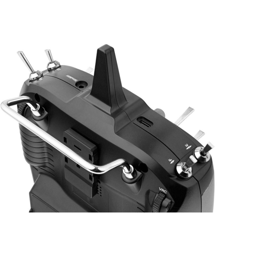 Vezérlőelemek: A fő funkciók vezérléséhez precíz keresztvezérlők állnak rendelkezésre, amelyek állítható erővel rendelkeznek a semlegesítő rugókban, és lehetővé teszik a rögzített gáztengely balra vagy jobbra mozgatását. Ennek köszönhetően szabadon választhatja ki az 1-4. keresztvezérlők üzemmódjait. A digitális trimmek hangjelzéssel jelzik a léptetést és a középső helyzetet. Enyhén excentrikusan helyezkednek el, és könnyen hozzáférhetők. További csatornák vezérelhetők az előlapon található két forgógombbal és az adó hátulján található két semlegesítő forgógombbal; nyolc kapcsoló (három háromállású és öt kétállású) szolgálhat csatornakapcsolóként vagy a programfunkciók be-/kikapcsolására. Az egyszerű programozáshoz egy pár gomb, egy programozó kerék/gomb és egy 2,8 hüvelyk átlójú, 320×240 pontos felbontású színes LCD kijelző szolgál. Az adó a FreeRTOS operációs rendszert használja.