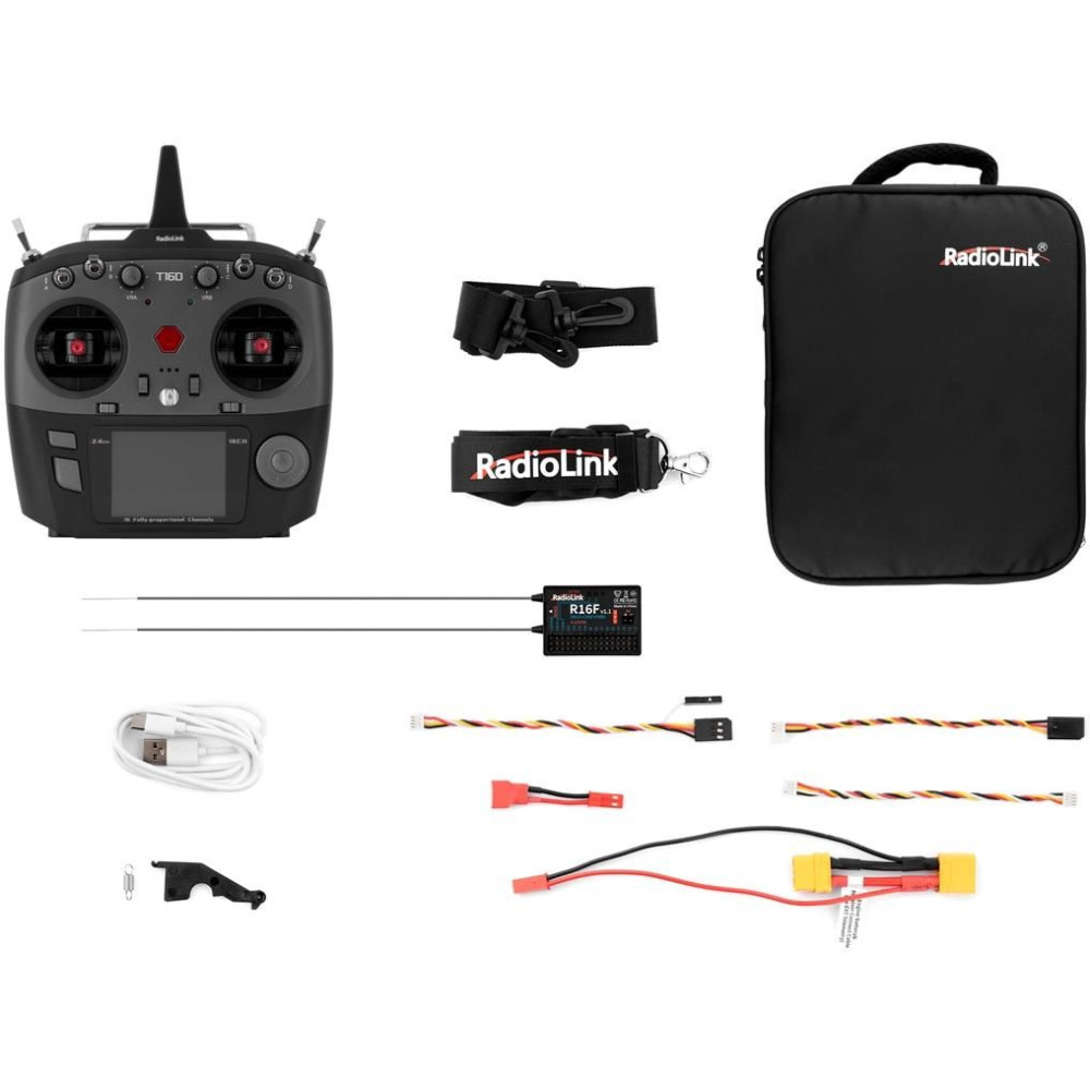 Szoftver: A T16D nyolcféle modellhez kínál programokat – klasszikus repülőgépekhez, szárnyasrepülőgépekhez/deltákhoz, multikopterekhez, helikopterekhez, autókhoz, hajókhoz, lánctalpas járművekhez/tankokhoz és robotokhoz –, miközben lehetőséget kínál a RadioLink vezérlőegységekkel való együttműködésre repülőgépek, drónok, járművek vagy akár egy halászhajó számára, beleértve a releváns telemetriát is.