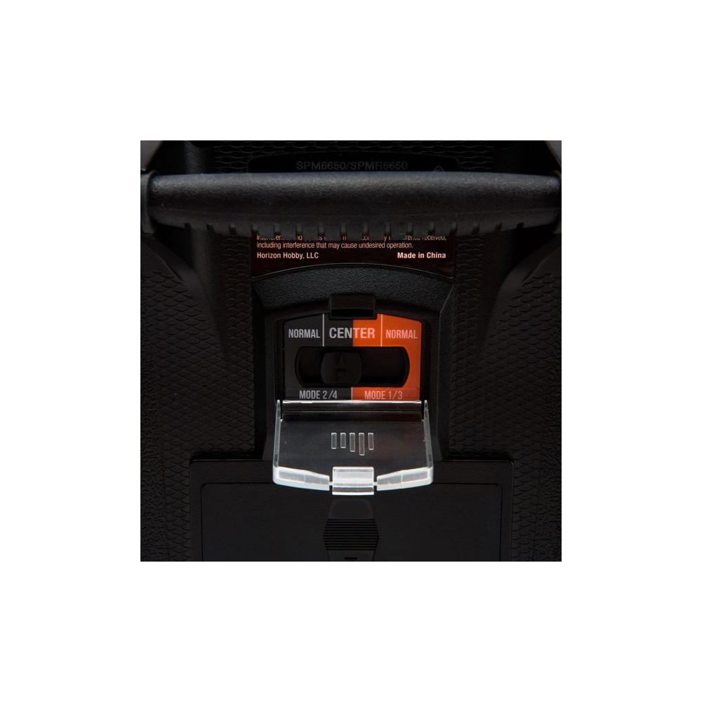 A DX6e szabadalmaztatott keresztvezérlő kialakítással rendelkezik, amely lehetővé teszi a konfiguráció megváltoztatását az adó hátoldalán található csúszókapcsoló egyszerű mozgatásával. Nincs szükség szerszámokra. Egyszerűen válassza ki a beállítandó üzemmódnak megfelelő rugókonfigurációt. A csúszókapcsolót egy csuklós fedél védi, amely megakadályozza a véletlen konfigurációváltást.