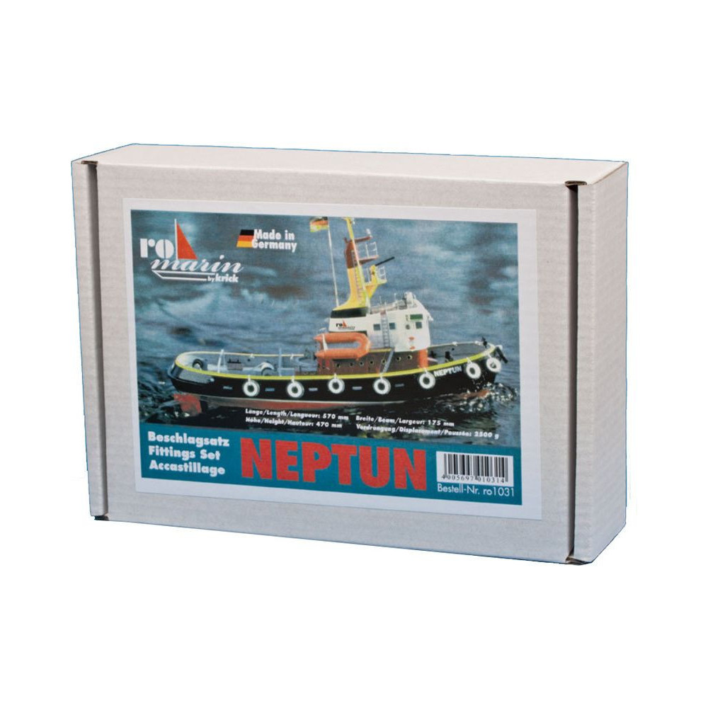 Ez a készlet tartalmazza a Neptun kikötői vontató RC modelljének (KR-ro1030) készlethez tartozó összes makett tartozékot. Tartalmazza a DE zászlót, keresőfényt, piros, zöld és 10 db fehér LED-et, mentőgyűrűket, létrákat, gerendákat, horgonyt, narancssárga tartályt, mozaik és alumínium alkatrészeket, mint lánc, csövek, sínek, csigák stb. és 15 db gumiabroncsot a hajótest oldalára.