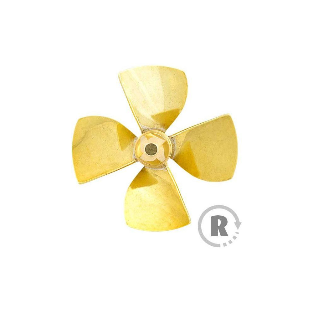 Raboesch hajócsavar 149-es osztály, 4 szárnyú, 50mm átmérőjű, jobbos forgásirányú, tengelyfelvétel M4-es menettel, anyaga sárgaréz, ezüsttel forrasztott.