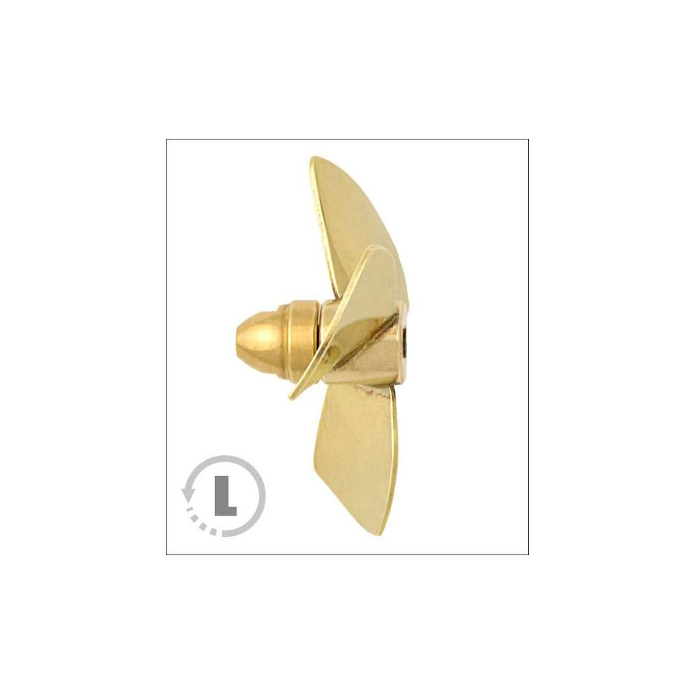 Raboesch hajócsavar 150-es osztályú 3-lapátos, átmérő 110mm, balos forgásirányú, tengelyrögzítés M5-ös menettel, anyaga sárgaréz, ezüsttel forrasztott.