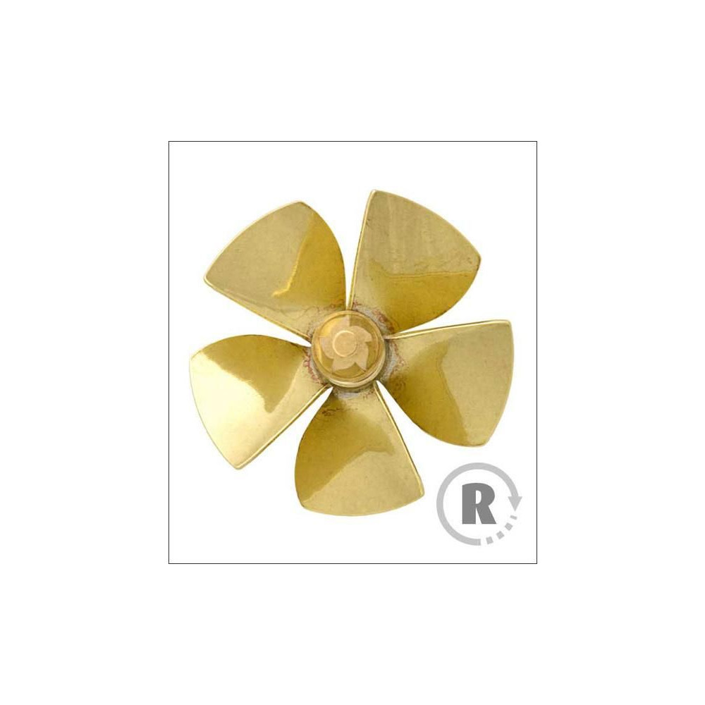 Raboesch hajócsavar 151-es osztályú 5 lapos, átmérője 40mm, jobbos forgásirányú, tengelyrögzítés M4-es menettel, anyaga sárgaréz, ezüsttel forrasztott.