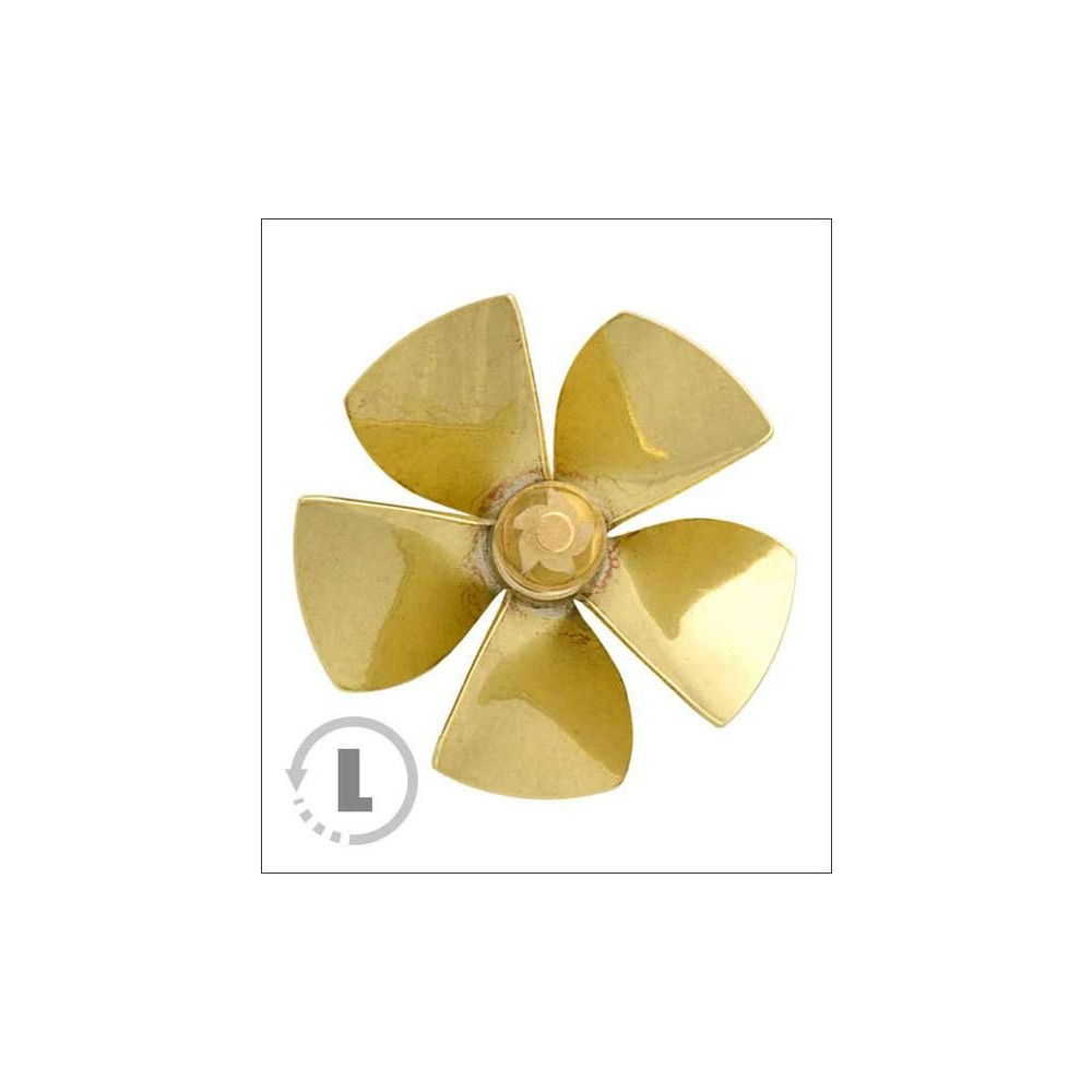 Raboesch hajócsavar 151-es osztályú 5 lapátos, átmérője 80mm, balos forgásirányú, tengelyrögzítés M5-ös menettel, anyaga sárgaréz, ezüsttel forrasztott.