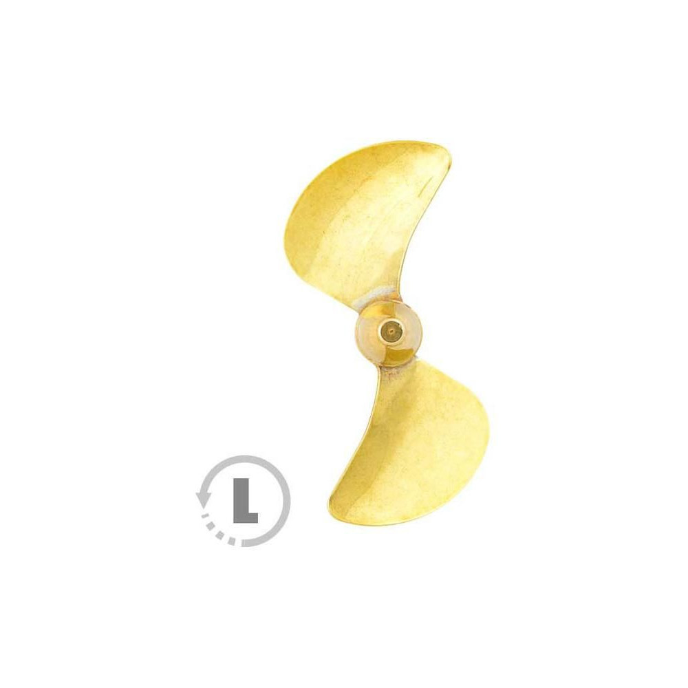 Raboesch hajócsavar 154-es osztályú, 2 szárnyú, átmérő 60mm, balos forgásirányú, tengelyrögzítés M4-es menettel, anyaga sárgaréz, ezüsttel forrasztva.