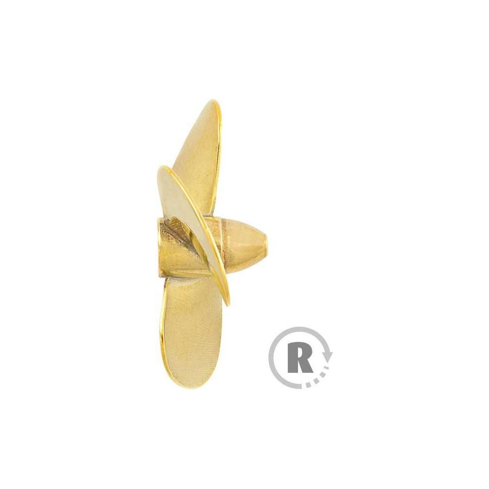 Raboesch hajócsavar 156-os osztályú 3-lapátos, 60mm átmérőjű, jobbos forgásirányú, tengelyrögzítés M4-es menettel, anyaga sárgaréz, ezüsttel forrasztott.