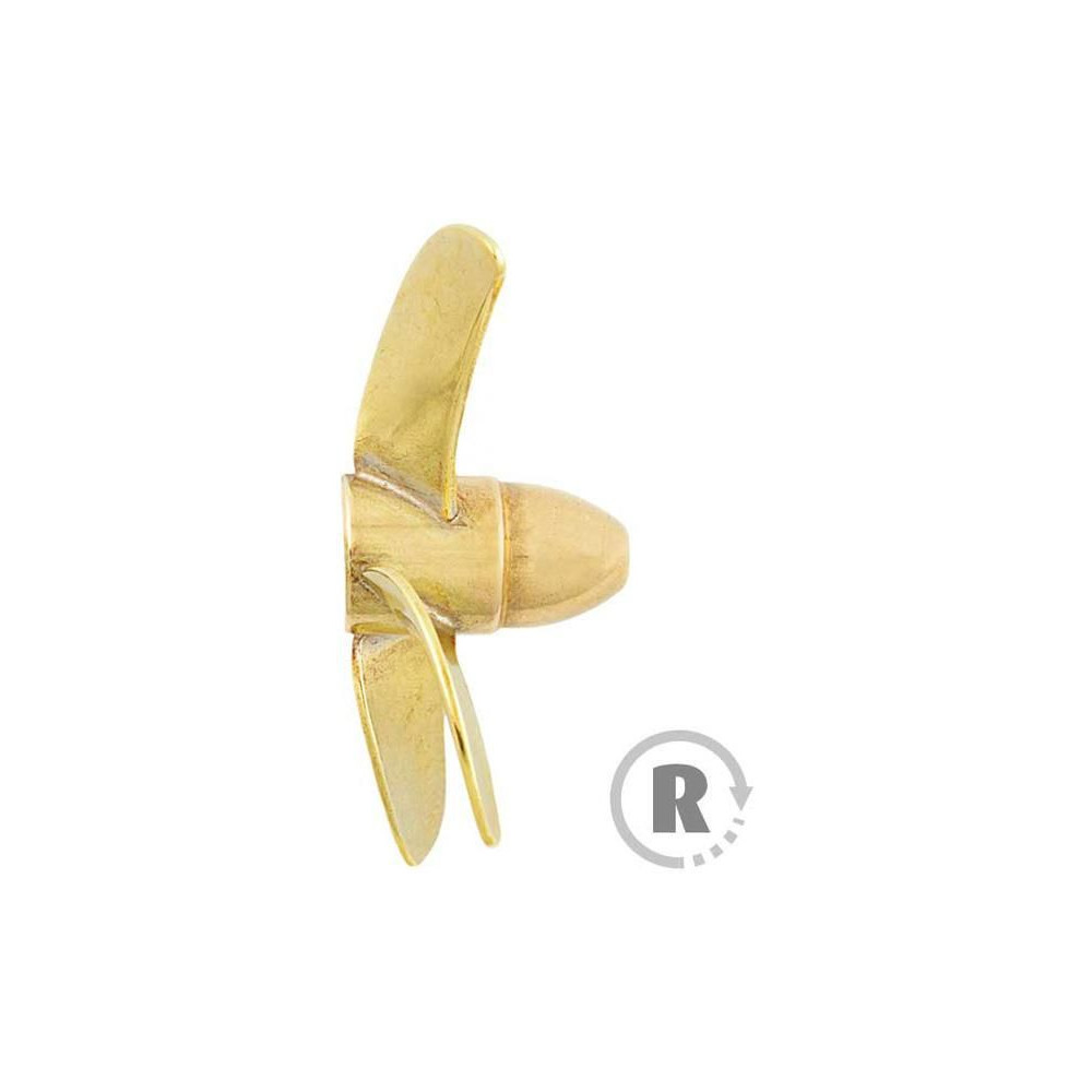 Raboesch hajócsavar 158-as osztályú, 4 szárnyú, 45mm átmérőjű, jobbos forgásirányú, tengelyrögzítés M4-es menettel, anyaga sárgaréz, ezüsttel forrasztott.
