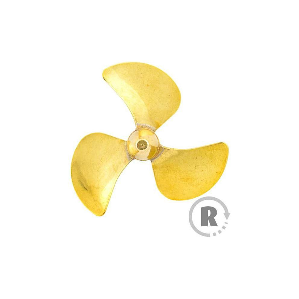 Raboesch hajócsavar 160-as osztályú 3-lapátos, 45mm átmérőjű, jobbos forgásirányú, tengelyrögzítés M4-es menettel, anyaga sárgaréz, ezüsttel forrasztott.
